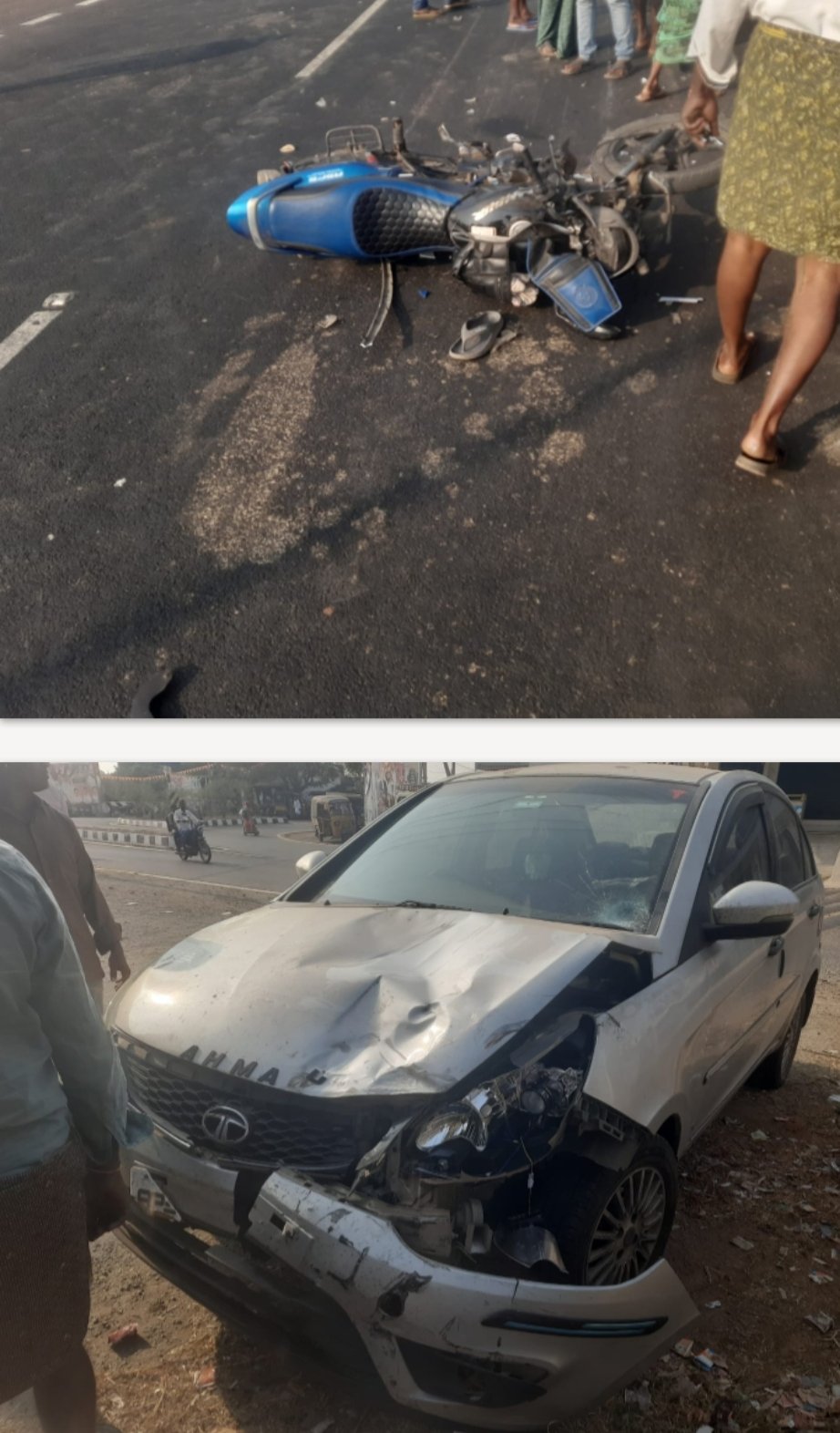 దుత్తలూరు 19-2-2026 నందిపాడు సెంటర్లో గురువారం ఉదయం రోడ్డు ప్రమాదం జరిగింది. అతివేగంగా వస్తున్న కారు, బైక్ ఒకదానికొకటి