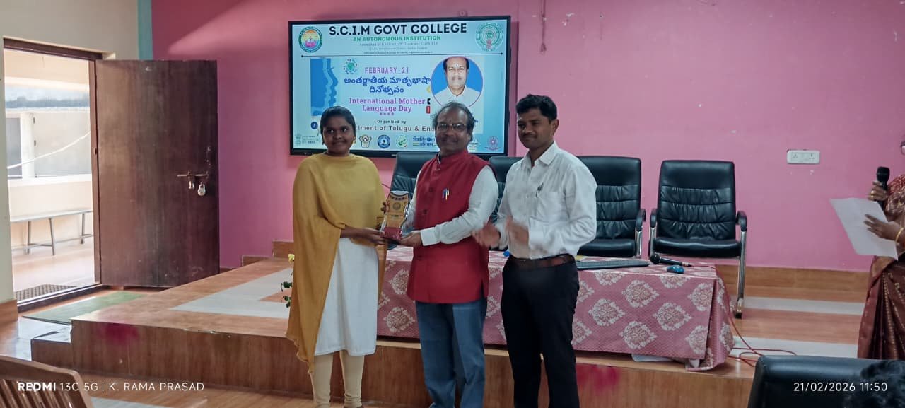 శ్రీ దుర్గా మల్లేశ్వర సిద్ధార్థ మహిళా కళాశాల లో 21-2-2026 వ తేదీన తెలుగు విభాగం వారు ,అంతర్జాతీయ