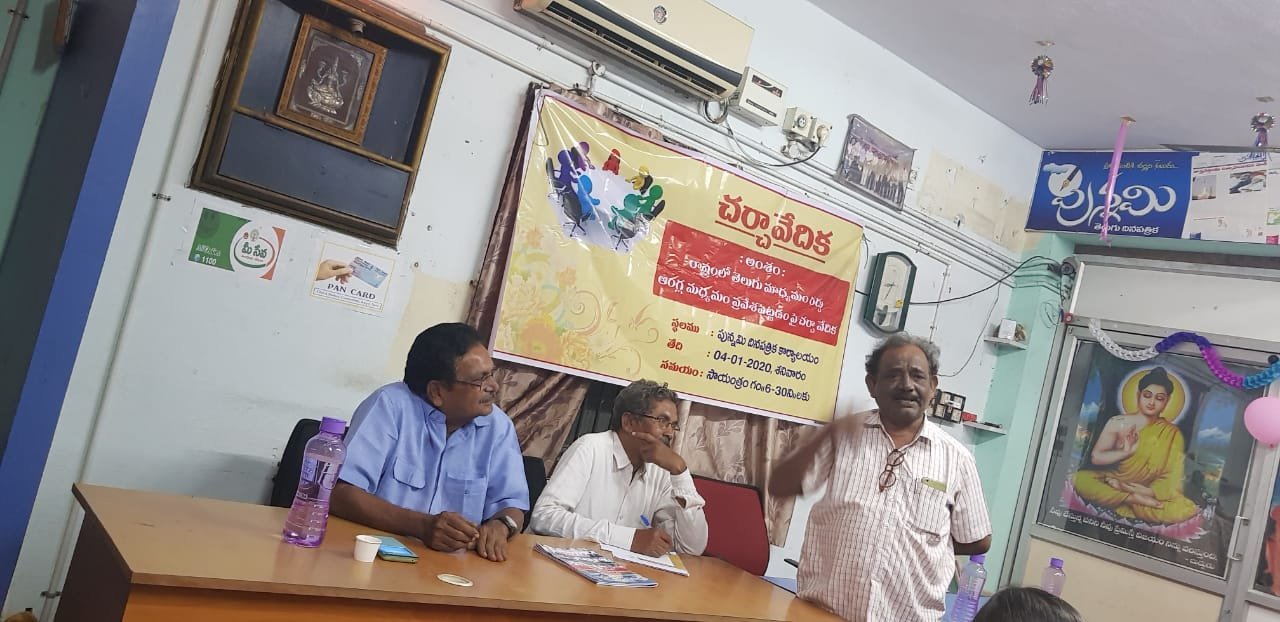 ప్రభుత్వ పాఠశాలల్లో మౌళిక సదుపాయాలతో పాటు ఉపాధ్యాయుల ఖాళీలను భర్తీ చేయాలన్నారు. కార్పొరేట్ విద్యా సంస్థల అధిపతులు ప్రభుత్వపాలకులుగా చెలామణి అవుతున్న నేపథ్యంలో ప్రభుత్వపాఠశాలలు కనుమరుగై ప్రైవేటు విద్య విలయతాండవం చేస్తుందన్నారు. ప్రభుత్వ పాఠశాలలను బలోపేతం చేసి పేద వర్గాలకు ఉన్నత విద్యను అందించాల్సిన అవసరం వుందన్నారు. ఈ చర్చా వేదికలో ఓపిడిఆర్ జిల్లా కార్యదర్శి ఆర్.శివశంకర్, పలు సంఘాల నాయకులు బొగ్గరపు రాధాకృష్ణమూర్తి, కల్పం రమేష్, ఏ.శ్రీనివాసులు, టి.లక్ష్మీనారాయణ, సి.హెచ్.ప్రసాద్ బాబు, వి.బ్రహ్మయ్య, తోట సులోచనలతో పాటు ఏపీటిఎఫ్, యుటిఎఫ్, జనవిజ్ఞాన వేదిక, తెలుగు భాషోద్యమ సమితి, పలు ఉపాధ్యాయ సంఘాల నాయకులు, పాత్రికేయులు పాల్గొన్నారు. చర్చా వేదికలో భిన్న అభిప్రాయాలు వ్యక్తమైనప్పటికి తెలుగు భాషను కాపాడుకోవాల్సిన ఆవశ్యకత ఎంతైనా వుందని ఎక్కువ మంది స్పష్టం చేశారు.
