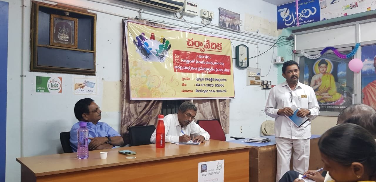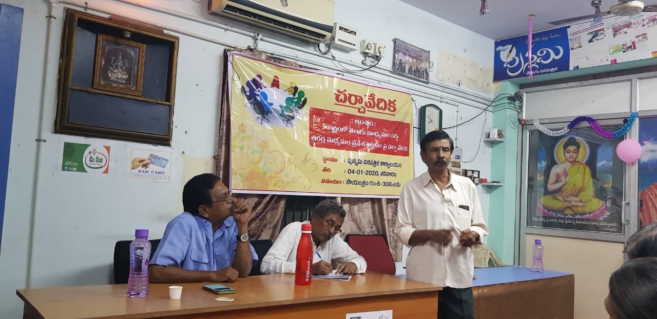 నెల్లూరు, జనవరి 4, (పున్నమి ప్రతినిధి) : తెలుగు భాషను కూనీ చేసేందుకు అహర్నిశలు శ్రమించిన పాలకులు దొంగే… దొంగా దొంగా అని అరిచినట్లు తెలుగు భాషపై చవితి ప్రేమ చూపిస్తున్నారని పలువురు మేధావులు ఆవేదన వ్యక్తం చేశారు. శనివారం నెల్లూరు నగరంలోని పున్నమి తెలుగు దినపత్రిక కార్యాలయంలో రాష్ట్రంలో తెలుగు మాధ్యమం రద్దు – ఆంగ్ల మాధ్యమం ప్రవేశపెట్టడం పై చర్చా వేదిక నిర్వహించారు.