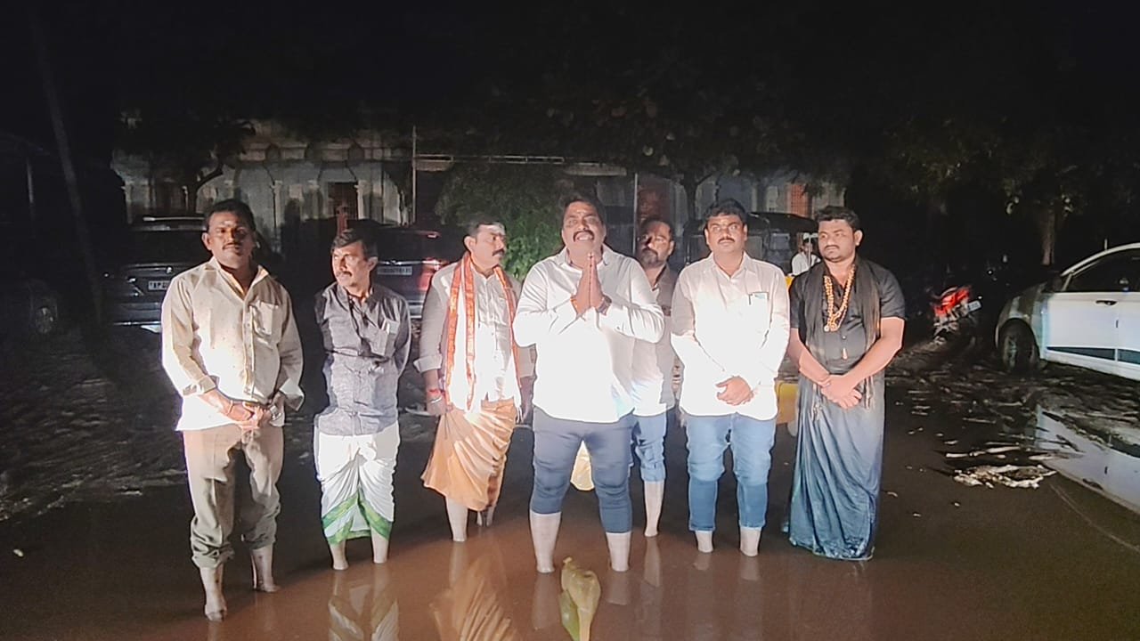 శ్రీకాళహస్తి పట్టణ పరిధిలో ఉన్న అర్ధనారీశ్వర స్వామి ఆలయంలో కార్తీక పౌర్ణమి నాడు విద్యుత్ సరఫరా అంతరాయంతో అర్ధనారీశ్వరాలయం అంధకారంలో ఉండిపోయి విద్యుత్ దీపాలులేక అలయావరణం అంతా చీకటిగా మారిన పరిస్తితి చూసి కార్తీక పౌర్ణమి నాడు శ్రీ అర్ధనారీశ్వర స్వామి వారి దర్శనార్ధం వచ్చిన మాజీ ఎమ్మెల్యే బియ్యపు మధుసూదన్ రెడ్డి అక్కడి పరిస్థితులు చూసి తీవ్ర ఆవేదనకు గురయ్యారు. ఆలయానికి విధ్యుత్ సరఫరా చియ్యవరం గ్రామం నుండి ఇవ్వడం పై మాజీ ఎమ్మెల్యే మండిపడ్డారు. కార్తీక పౌర్ణమి నాడు అర్ధనారీశ్వర స్వామి ఆలయానికి వచ్చే మహిళలు పడుతున్న ఇబ్బందులు చూస్తుంటే ఈ పాపం ఎవరిని విడిచిపెట్టదని కార్తీకమాసంలో ఈ ఆలయానికి మహిళలు అధిక సంఖ్యలో వస్తుంటారని స్వామివారి ఆలయంలో కనీసం విద్యుత్తు సరఫరా కూడా లేకపోవడం చాలా బాధాకరమన్నారు. అలాగే శ్రీకాళహస్తి పట్టణ పరిధిలో ఉన్న శివాలయానికి చియ్యవరం గ్రామ నుండి విద్యుత్ సరఫరా ఇవ్వడం అందులో ఇవాళ విద్యుత్ లేకపోవడంపై ఆగ్రహం వ్యక్తం చేశారు. అలాగే స్వామివారి ఆలయానికి వెళ్లే రోడ్డు సరిగ్గా లేక అక్కడికి వచ్చే మహిళలు తీవ్ర ఇబ్బందులు ఎదుర్కొంటూ జారిపడటం చూస్తుంటే ఈ పాపంకి కారకులైన వారిని శివయ్య కఠినంగా శిక్షిస్తాడన్నారు. స్వామివారి ఆలయానికి వెళ్లే రోడ్డుకు ఇరువైపులా పదివేల లోడ్లు ఇసుక దోచుకుని కనీసం 10 లోడ్లతో కూడా స్వామివారి ఆలయం రోడ్లు వేయాలనిపించలేదని అసహనం వ్యక్తం చేశారు. శ్రీకాళహస్తి అనుబంధం ఆలయాలపై శ్రద్ధ లేని ఈవో దేవస్థానం ఏసి రూమ్ లో కూర్చుని కలెక్షన్లకే పరిమితమయ్యారని భక్తుల మనోభావాలు దెబ్బతీస్తున్న దేవస్థానం ఈవో దీనిపై 24 గంటల్లో సమాధానం చెప్పాలని లేకుంటే తానే ధర్నాకి దిగుతానని అయన హెచ్చరించారు. ఈ కార్యక్రమంలో దేవస్థానం మాజీ చైర్మన్ అంజూరు తారక శ్రీనివాసులు, ఉత్తరాజి సర్వణ కుమార్, కంట ఉదయ్ కుమార్, కొల్లూరు హరి నాయుడు, టైలర్ శ్రీను తదితరులు పాల్గొన్నారు.