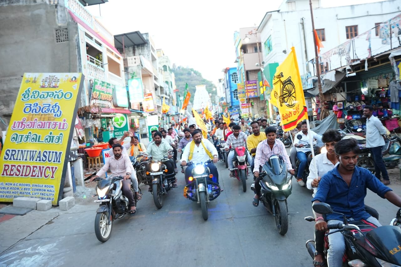శ్రీకాళహస్తి, ఏప్రిల్ 07 (పున్నమి న్యూస్): రాజధాని అమరావతి పరిరక్షణే లక్ష్యంగా, రాష్ట్ర భవిష్యత్తు కోసం శ్రీకాళహస్తి నియోజకవర్గంలో “అమరావతి విజయోత్సవ” భారీ బహిరంగ ర్యాలీ అట్టహాసంగా సాగింది. స్థానిక ఎమ్మెల్యే ఆధ్వర్యంలో జరిగిన ఈ కార్యక్రమంలో కూటమి నాయకులు, వేలాది మంది కార్యకర్తలు, అమరావతి పరిరక్షణ సమితి అభిమానులు పెద్ద ఎత్తున పాల్గొనడంతో పట్టణం పండగ వాతావరణాన్ని తలపించింది. పట్టణంలోని ఏపీ సీడ్స్ కార్యాలయం వద్ద ప్రారంభమైన ఈ భారీ ర్యాలీ, వందలాది బైక్లు మరియు వేలాది మంది ప్రజల భాగస్వామ్యంతో అత్యంత ఉత్సాహంగా సాగింది. నాలుగు మాడ వీధుల గుండా ప్రయాణించిన ఈ ప్రదర్శనలో అమరావతికి మద్దతుగా నినాదాలు మిన్నంటాయి. మన రాజధాని కోసం నిలబడిన ప్రతి ఒక్కరి గొంతుక ఈ ర్యాలీలో ప్రతిధ్వనించిందని ఎమ్మెల్యే ఈ సందర్భంగా పేర్కొన్నారు. ఈ విజయవంతమైన కార్యక్రమంపై ఎమ్మెల్యే స్పందిస్తూ.. రాష్ట్ర అభివృద్ధి కోసం, అమరావతి భవిష్యత్తు కోసం ఇంతటి భారీ మద్దతు తెలిపిన కూటమి శ్రేణులకు, నా నియోజకవర్గ ప్రజలకు హృదయపూర్వక ధన్యవాదాలు. మన రాజధానిని కాపాడుకుంటూ, రాష్ట్రాన్ని ప్రగతి పథంలో నడిపించే వరకు మన పోరాటం, మన ఉత్సాహం ఇలాగే కొనసాగుతుందని స్పష్టం చేశారు. ఈ కార్యక్రమంలో నియోజకవర్గ స్థాయి ముఖ్య నేతలు, కార్యకర్తలు, ప్రజలు భారీ సంఖ్యలో పాల్గొన్నారు.