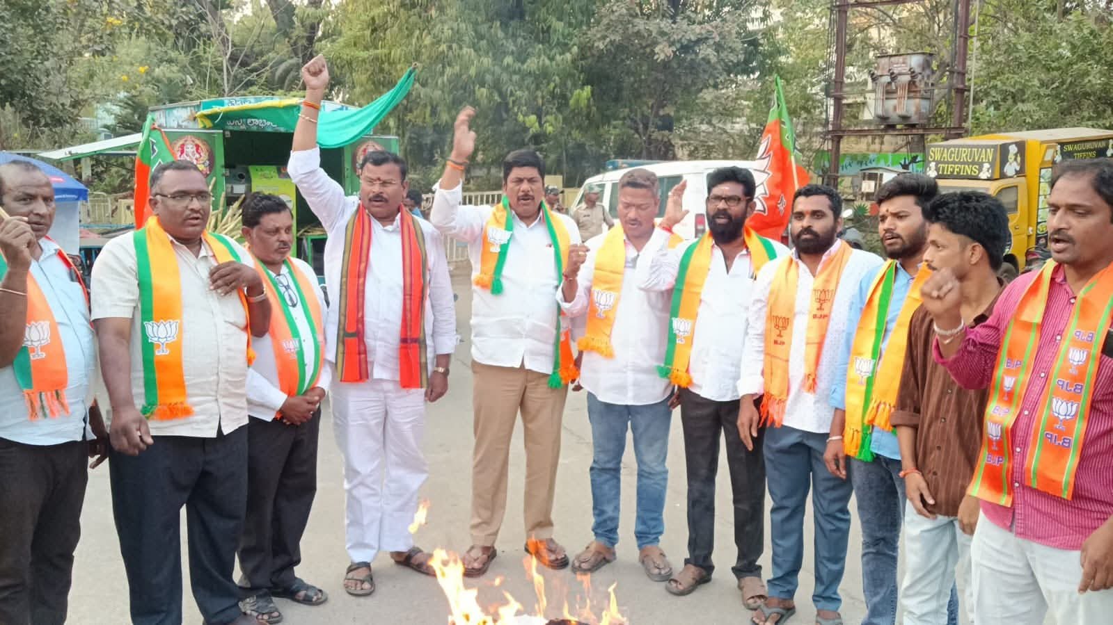 దేశ ప్రతిష్టను దెబ్బతీయాలనే ఉద్దేశంతో ఇండియా ఏఐ ఇంపాక్ట్ సమ్మిట్ను అడ్డుకునేందుకు ప్రయత్నించిన యూత్ కాంగ్రెస్ నాయకుల చర్యలను తీవ్రంగా ఖండిస్తూ, భారతీయ జనతా పార్టీ ఖమ్మం జిల్లా అధ్యక్షులు నెల్లూరి కోటేశ్వర రావు ఆధ్వర్యంలో సోమవారం ఆర్ & బి అతిథి గృహం వద్ద నిరసన కార్యక్రమం నిర్వహించారు. ఈ సందర్భంగా కాంగ్రెస్ అగ్రనేత రాహుల్ గాంధీ దిష్టిబొమ్మను దగ్ధం చేసి ఆగ్రహం వ్యక్తం చేశారు.