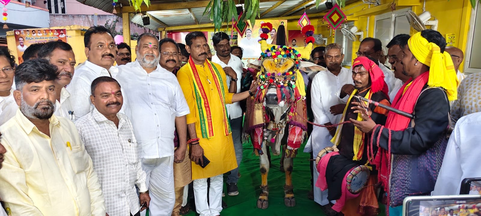 విశాఖ జిల్లా గాజువాక తెలుగుదేశం పార్టీ కార్యాలయంలో సోమవారం సాయంత్రం నిర్వహించిన సంక్రాంతి వేడుకలు ఉత్సాహంగా సాగాయి.కూటమి శ్రేణులు భారీగా తరలివచ్చి వేడుకల్లో పాల్గొన్నారు.డోలు,సన్నాయి,గంగిరెద్దుల సందడి,భోగి మంటలు,రంగవల్లులతో కార్యాలయం పండుగ శోభను సంతరించుకుంది.చిన్నారుల సాంస్కృతిక ప్రదర్శనలు,కూచిపూడి,భరతనాట్యం,ధింసా,లంబాడీ నృత్యాలు ఆధ్యంతం అలరించాయి.వేడుకలను రాష్ట్ర తెలుగుదేశం పార్టీ అధ్యక్షుడు,గాజువాక ఎమ్మెల్యే పల్లా శ్రీనివాసరావు ప్రారంభించారు.ఈ సందర్భంగా ఆయన మాట్లాడుతూ తెలుగు వారి సంస్కృతి,సంప్రదాయాలు ఎంతో గొప్పవని,మన పండుగల విశిష్టతను భావితరాలకు తెలియజేయాలని అన్నారు.రైతన్నకు ఈ సంక్రాంతి సిరులు కురిపించాలని ఆకాంక్షించారు.ప్రధాని నరేంద్ర మోదీ ఆశీస్సులతో రాష్ట్రంలోని కూటమి ప్రభుత్వం అభివృద్ధి,సంక్షేమ కార్యక్రమాలను ప్రజలకు చేరువ చేస్తోందని తెలిపారు.ముఖ్యమంత్రి చంద్రబాబు నాయుడు ఆలోచనలతో,ఉప ముఖ్యమంత్రి పవన్ కల్యాణ్ సూచనలతో రాష్ట్రం వేగంగా ప్రగతి బాటలో సాగుతోందని పేర్కొన్నారు.ఈ సందర్భంగా రాష్ట్ర ప్రజలకు,కూటమి శ్రేణులకు,అధికార యంత్రాంగానికి సంక్రాంతి శుభాకాంక్షలు తెలిపారు.నియోజకవర్గ సమన్వయకర్త ప్రసాదుల శ్రీనివాసరావు అధ్యక్షతన జరిగిన ఈ కార్యక్రమంలో డీసీసీబీ చైర్మన్ కోన తాతారావు,కార్పొరేటర్లు పల్లా శ్రీనివాస్,బొండా జగన్,రాజాన రామారావు,రౌతు శ్రీనివాస్,లేళ్ళ కోటేశ్వరరావు,కాకి గోవింద్ రెడ్డి,గంధం శ్రీనివాస్,జనసేన నాయకులు గడసాల అప్పారావు,గంధం వెంకటరావు,ఇందల వెంకట రమణ,బీసీ సెల్ అధ్యక్షుడు తమిరె శివప్రసాదరావు,డివి సత్యారావు,వెంకటేశ్వరరావు,కాతా బాలకృష్ణ తదితరులు పాల్గొన్నారు.