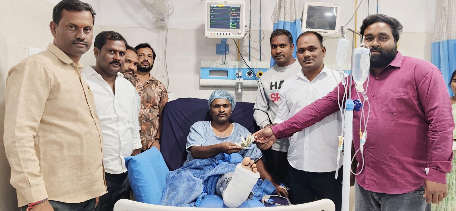 పరామర్శించి 10,000 రూపాయలు ఆర్థిక సహాయం ఇవ్వడం జరిగింది.ఈ కార్యక్రమంలో సూరమోని సత్యనారాయణ వరికుప్పల అశోక్, చెరుకురి రాజు, వీర ప్రవీణ్, చింతకింది వీరేష్ ,మాదాసు శ్రీరామ్, సోప్పరి కరుణాకర్ నెనవత్ జలంధర్, ప్రవిణ్ నాయక్,తదితరులు పాల్గొన్నారు.
