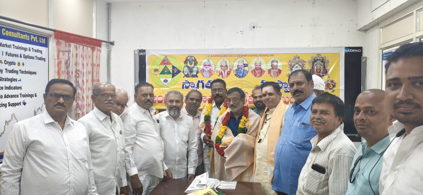 కర్నూలు టౌన్ బంగారు పేటలోని MRB ట్రేడ్ సహాయ్ కన్సల్టెన్సీ కార్యాలయంలో జంగమ మహేశ్వర సంక్షేమ సంఘం ఆంధ్రప్రదేశ్ రాష్ట్ర కార్యవర్గ సమావేశం ఘనంగా నిర్వహించారు. ఈ సమావేశంలో సంఘం అభివృద్ధి, భవిష్యత్ కార్యాచరణ మరియు శ్రీశైల క్షేత్రంలోని సంప్రదాయాలపై పలు కీలక నిర్ణయాలు తీసుకున్నారు.