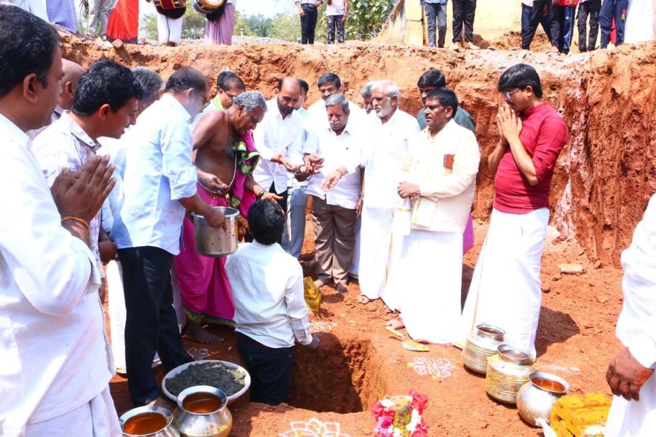 కలిగిరి మండలం జిర్రావారిపాలెం గ్రామంలో శ్రీ శ్రీ శ్రీ కోదండ రామస్వామి స్వామివారి నూతన ఆలయ నిర్మాణానికి ఈరోజు శంకుస్థాపన కార్యక్రమం నిర్వహించారు. ఆలయ ప్రాంగణంలో ప్రత్యేక పూజలు, వేద మంత్రోచ్చారణల మధ్య నిర్మాణ పనులకు శ్రీకారం చుట్టారు. భక్తులకు మెరుగైన సౌకర్యాలు కల్పించేందుకు దేవాదాయ శాఖ సహకారంతో రూ.1 కోటి నిధులు మంజూరు చేశారు. గ్రామ ప్రజల ఆధ్యాత్మిక అవసరాలను దృష్టిలో ఉంచుకుని ఆలయ అభివృద్ధికి ప్రభుత్వం కట్టుబడి ఉందని తెలిపారు. కార్యక్రమంలో ఉదయగిరి ఎమ్మెల్యే కాకర్ల సురేష్, ఆ గ్రామ ప్రజలు, భక్తులు, స్థానిక నాయకులు పాల్గొన్నారు.