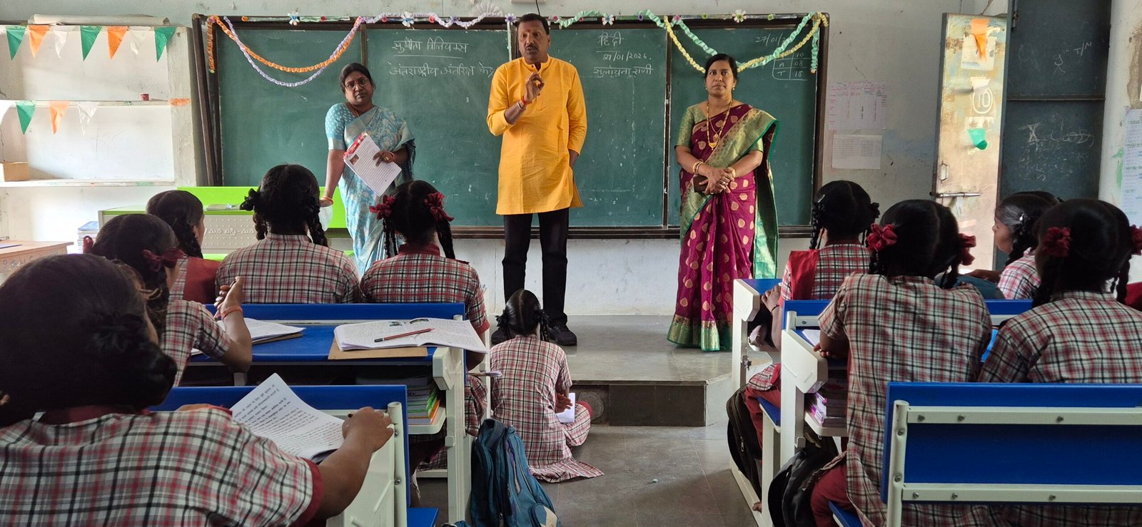 *డిజిటల్ విద్య ద్వారానే హిందీ సరళతరం చేయాలని ఉపాధ్యాయులకు సూచన* *పున్నమి ప్రతినిధి వనపర్తి జిల్లా తేదీ 27/01/2026* *నేడు జిల్లా పరిషత్ ఉన్నత పాఠశాల ఖిల్లా ఘనపూర్ బాలికలు జిల్లా తనిఖీ విభాగం, వనపర్తి హిందీ తొమ్మిదో తరగతి గదిలో హిందీ అభ్యసన సామర్ధ్యాలను హిందీ రిసోర్స్ పర్సన్ ఎంఎన్ విజయకుమార్ పరిశీలించి సూచనలు సలహాలు ఇచ్చారు, డిజిటల్ బోధన పద్ధతులను ఉపయోగిస్తే హిందీ విద్యార్థులకు సులభంగా సరళతరంగా అర్ధమవుతుందని వారు విద్యార్థులను ఉద్దేశించి మాట్లాడారు*