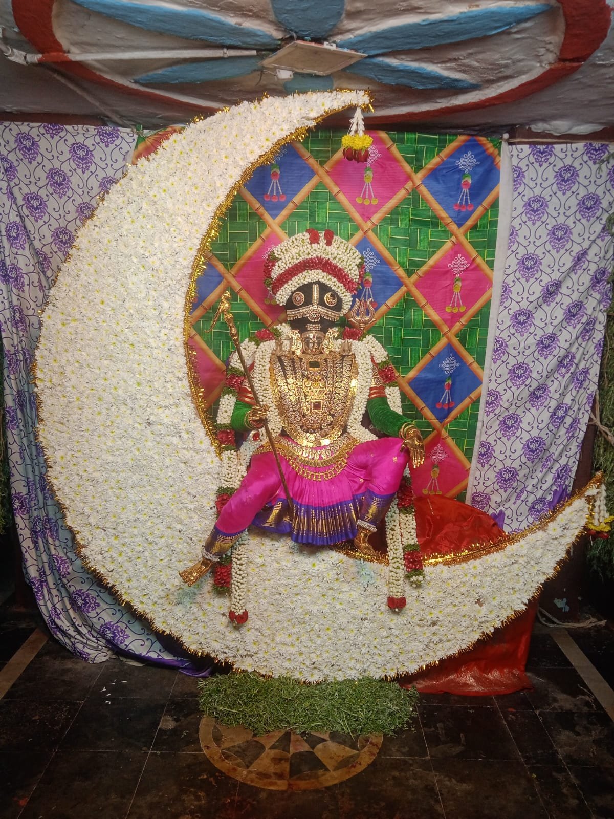 శ్రీకాళహస్తి, మార్చి 19 (పున్నమి న్యూస్): శ్రీకాళహస్తి పట్టణంలోని బహదూర్ పేటలో కొలువై ఉన్న శ్రీ శ్రీ నల్ల గంగమ్మ తల్లి దేవస్థానంలో ఉగాది పర్వదిన వేడుకలు అత్యంత వైభవంగా జరిగాయి. తెలుగు నూతన సంవత్సరాన్ని పురస్కరించుకుని అమ్మవారికి విశేష పూజా కార్యక్రమాలు నిర్వహించారు. ఈ సందర్భంగా అమ్మవారిని దవనం తడికలతో చంద్ర అలంకరణలో అత్యంత నయనమనోహరంగా తీర్చిదిద్దారు. దేవస్థానం చైర్మన్ కంటా రమేష్ ఆధ్వర్యంలో ఉదయం నుంచే అమ్మవారికి అభిషేకాలు, అర్చనలు, ప్రత్యేక అలంకరణలు శాస్త్రోక్తంగా జరిగాయి. చల్లని వెన్నెల కురిపించే చంద్రుడి రూపంలో దవనం తడికల అలంకారంలో దర్శనమిచ్చిన అమ్మవారిని చూసి భక్తులు పులకించిపోయారు. ఈ విశేష అలంకారాన్ని తిలకించేందుకు భక్తులు భారీ సంఖ్యలో తరలివచ్చి మొక్కులు చెల్లించుకున్నారు. ఆలయానికి విచ్చేసిన భక్తులకు ఎటువంటి ఇబ్బందులు కలగకుండా ఆలయ కమిటీ సభ్యులు పర్యవేక్షించారు. దర్శనం అనంతరం భక్తులందరికీ తీర్థప్రసాదాలను పంపిణీ చేశారు. ఈ కార్యక్రమంలో ఆలయ కమిటీ సభ్యులు ప్రదీప్, అనిల్, రాజశేఖర్, నారాయణ, సుబ్రహ్మణ్యం, రాజేంద్ర, కపిల్, యాదగిరిలతో పాటు ఆలయ అర్చకులు మరియు భక్తులు పెద్ద సంఖ్యలో పాల్గొన్నారు.