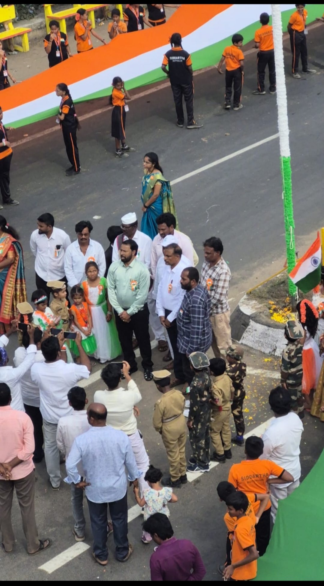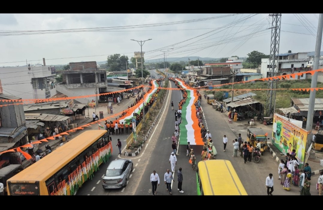 భారీ జాతీయపతాకం ప్రదర్శన అందరిని ఆకర్శించింది. ఈ కార్యక్రమం లొ మండలం తహసీల్దార్ గారు స్కూల్ కరెస్పాండంట్ శంకరరెడ్డి గారు స్కూల్ అధ్యాపకులు, మండలం అధికారులు పాల్గొన్నారు.