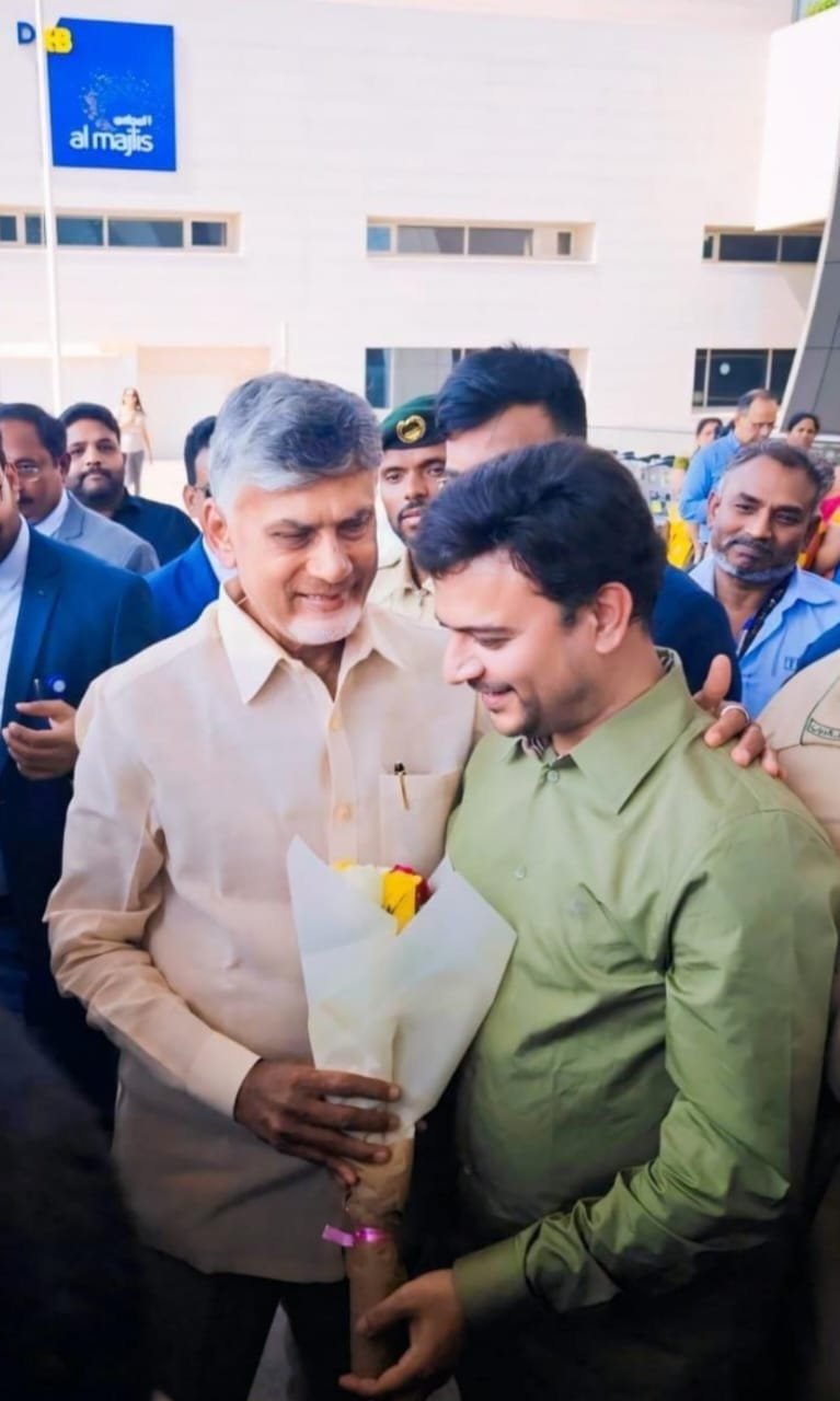 దుబాయ్ ఎయిర్పోర్టులో ముఖ్యమంత్రి నారా చంద్రబాబు నాయుడుకి కి స్వాగతం పలికిన ఎంజీఎం గ్రూప్ డైరెక్టర్ డాక్టర్ గుడ్లూరు మయూర్.