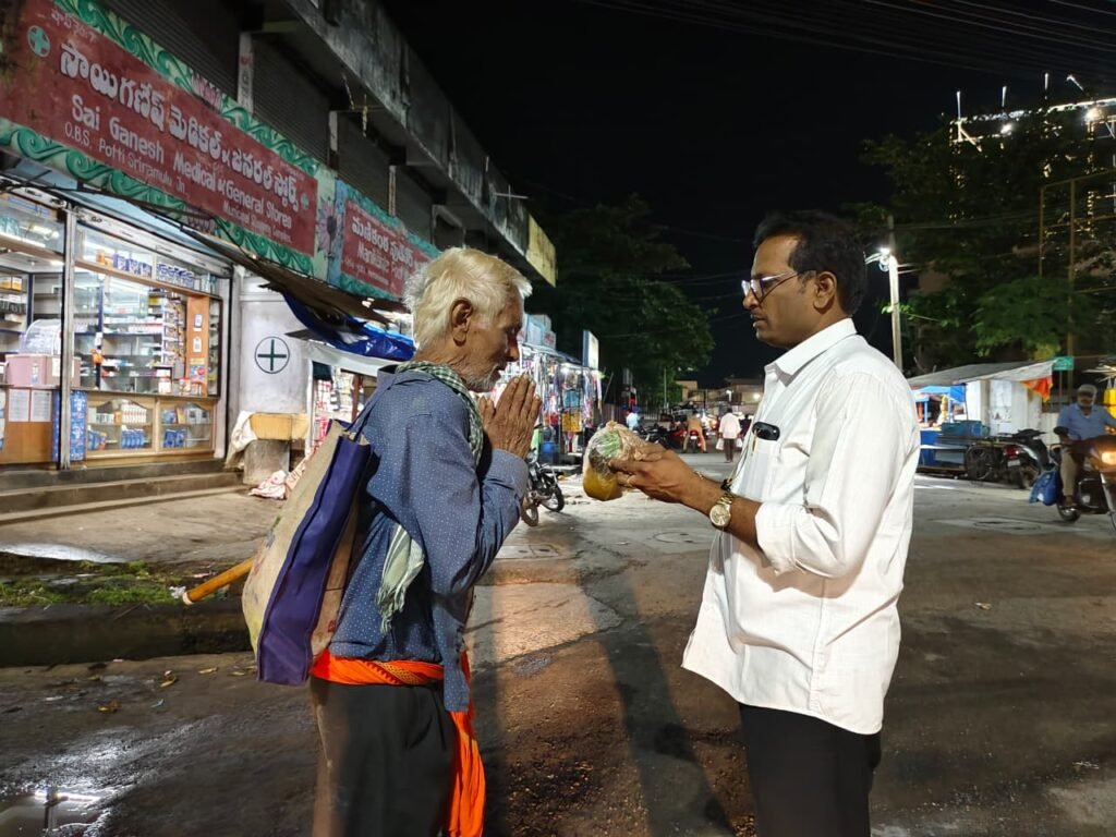 స్థానిక ఉమారుద్ర కోటేశ్వర స్వామి ఆలయం, పాత బ్రిడ్జి, కొత్త బ్రిడ్జి, డే అండ్ నైట్ కూడలి, నైట్ షెల్టర్, రామలక్ష్మణ, సూర్యమహల్, అరసవల్లి , పాత బస్ స్టాండ్, ఏడు రోడ్ల కూడలి, కొత్త రోడ్ పరిసర ప్రాంతాలలో నిస్సహాయ పేదలకు ఆహారాన్ని అందించారు. అనంతరం పేదల వైద్యులు ఇంజరాపు.మోహన్ మాట్లాడుతూ సివిల్స్ కి సిద్దమౌతున్న నా కుమార్తె, కీర్తన ఆలోచన మేరకు ఈ రోజు నగరంలో వందమంది ఆకలి తీర్చామని, మన ఊరు, మన బాధ్యతలో భాగముగా సేవా కార్యక్రమాన్ని చేయటం బాధ్యతతోపాటు, పదిమంది కడుపు నింపటం ఆనందంగా ఉందన్నారు.
