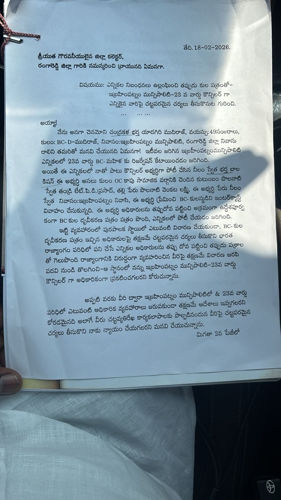 ఇబ్రహీంపట్నం మున్సిపాలిటీ చైర్మన్, వైస్ చైర్మన్ ఎన్నిక తీవ్ర ఉత్కంట రేపుతున్న వేల నిల స్వేత రూపంలో మరో బాంబ్ పేలింది…. బీసీ రిజర్వేషన్ ఉన్న స్థానంలో oc మహిళా పోటీ చేసిందని అట్టి ఎన్నిక చెల్లదని సదరు కాంగ్రెస్ పార్టీ అభ్యర్థి ఆరోపిస్తిన్నారు… నీలం స్వేత పై పిర్యాదు సైతం చేశారు… అదే నిజం అయితే స్వేత అభ్యర్థిత్వాన్ని రద్దు చేస్తే BRS సంఖ్య బలం 13 కి పడిపోతుంది… ఇక నీలం స్వేత అభ్యర్థిత్వం పోతే సెకండ్ వచ్చిన అభ్యర్థికి విజయం లభిస్తుంది దింతో కాంగ్రెస్ సంఖ్యబలం 12 కి చేరుతుంది.. రోజు రోజు కు మారుతున్న రాజకీయ సమీకరణాలలో BRS క్యాంపు లొ ఉండే అభ్యర్థులు ఎంతమంది ఉంటారో తెలియడం లేదు…