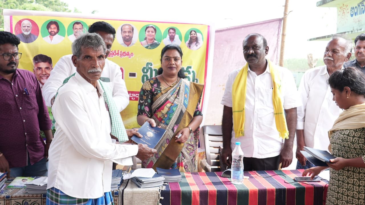 ఈ సందర్భంగా పల్లంపల్లి రెవిన్యూ పరిధిలోని 45 మంది రైతులకు ప్రభుత్వ రాజ్యముద్రతో కూడిన పట్టాదారు పాసు పుస్తకాలను అధికారులు, కూటమి నేతలతో కలిసి ఎమ్మెల్యే లబ్ధిదారులకు అందజేశారు. అనంతరం మాట్లాడిన ఎమ్మెల్యే తంగిరాల సౌమ్య, భూమిపై రైతులకు సంపూర్ణ హక్కులుకల్పించడమే లక్ష్యంగా ఎన్డీఏ కూటమి ప్రభుత్వం “మీ భూమి–మీ హక్కు” కార్యక్రమాన్ని అమలు చేస్తోందని తెలిపారు. భూ సంబంధిత వివాదాలకు శాశ్వత పరిష్కారం లభించడంతో పాటు, రైతులు ఆర్థికంగా బలోపేతం కావడానికి ఈ పట్టాదారు పాసు పుస్తకాలు ఎంతో దోహదపడతాయని అన్నారు. ప్రభుత్వ రాజ్యముద్రతో జారీ చేసిన పాసు పుస్తకాల ద్వారా రైతులకు బ్యాంకు రుణాలు, వ్యవసాయ పెట్టుబడులు సులభంగా లభిస్తాయని పేర్కొన్నారు. రైతు సంక్షేమమే ప్రభుత్వ ప్రధాన లక్ష్యమని స్పష్టం చేస్తూ, రైతుల హక్కులను కాపాడేందుకు ప్రభుత్వం ఎల్లప్పుడూ అండగా ఉంటుందని భరోసా ఇచ్చారు.