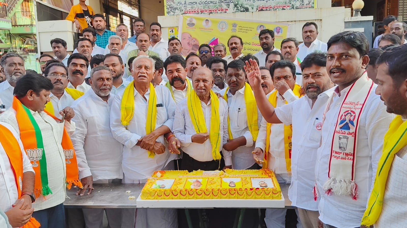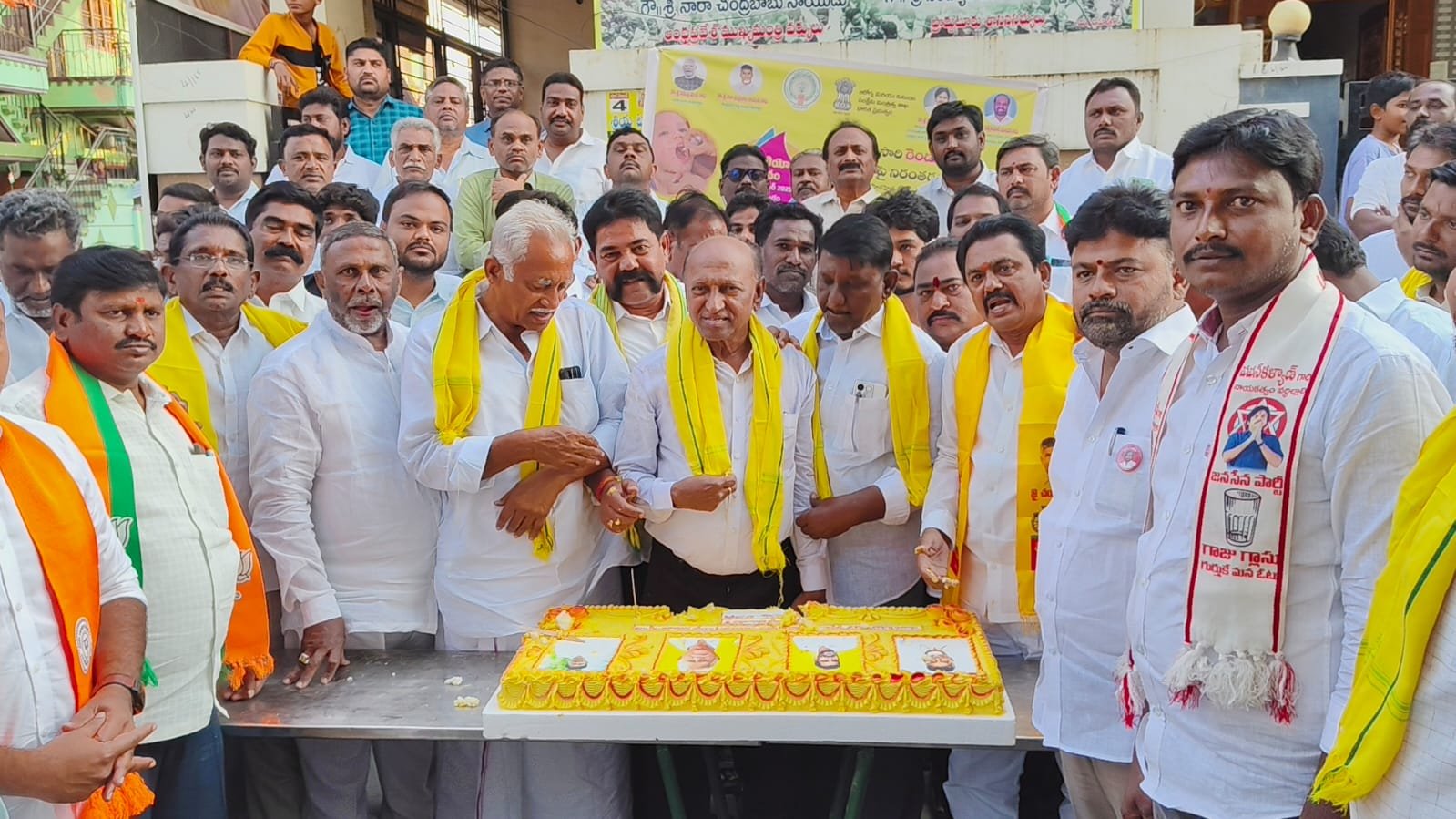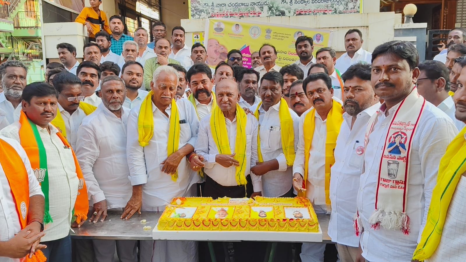 ప్రొద్దుటూరు నియోజవర్గం టిడిపి కార్యాలయం నందు నాని కాలేజ్ 70 కోట్ల రూపాయలు విడుదల చేశారు ప్రకటించిన విషయమై కూటమి ప్రభుత్వం నాయకులు సంబరాలు. ఈ కార్యక్రమంలో టిడిపి బిజెపి జనసేన నాయకులు కార్యకర్తలు అధిక సంఖ్యలో పాల్గొని టిడిపి ప్రభుత్వానికి నంద్యాల వరదరా రెడ్డి గారికి ఆరోగ్య శాఖ మంత్రి సత్య కుమార్ గారికి జేజేలు పలుకుతూ సంబరాలు చేశారు.
