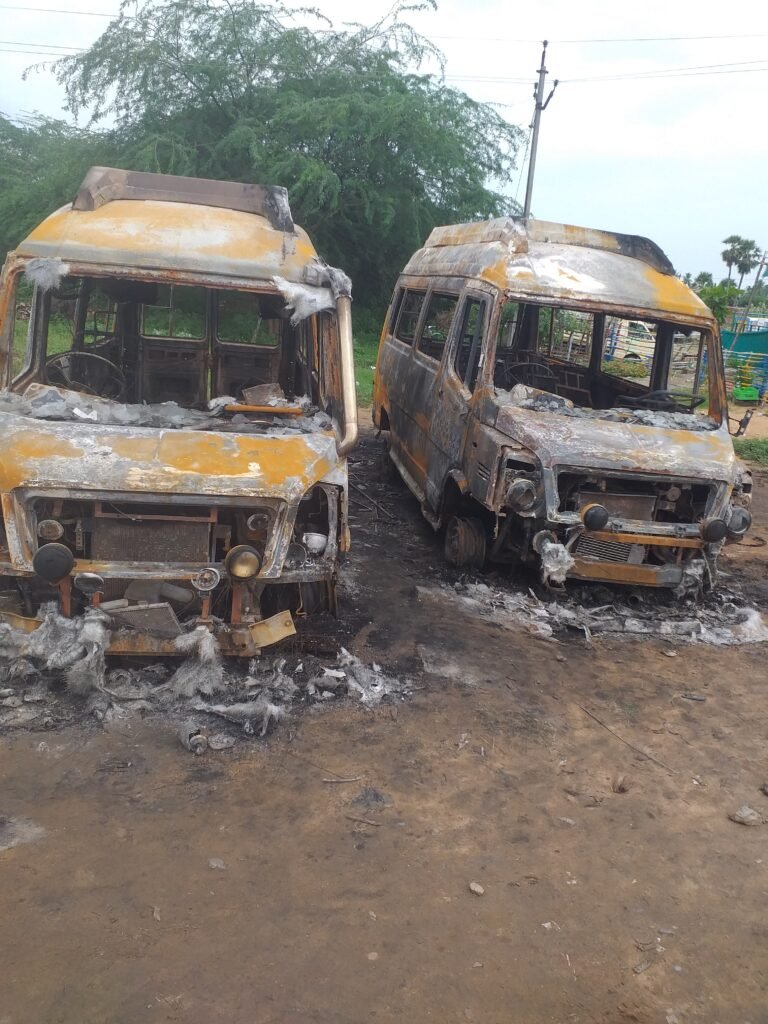 ఈరోజు27.8.25 తేదీ వేకువజామున సుమారుగా 5 గంటల సమయంలో అంబేద్కర్ విగ్రహం నుండి జొన్నవాడికి పోయే మార్గం ఇండియన్ పెట్రోల్ బంక్ ఎదురుగా ఉన్న టీ సెంటర్ మరియు టెంపో స్టాండ్ వద్ద పార్కింగ్ చేసి ఉన్న రెండు టెంపోలు అగ్నికి ఆహుతి అయినాయి. దానికి తగిన కారణములు ఇంకా తెలియ రాలేదు. బుచ్చిరెడ్డిపాలెం పోలీసు వారు కేసు నమోదు చేసి దర్యాప్తు చేస్తున్నారు.End.