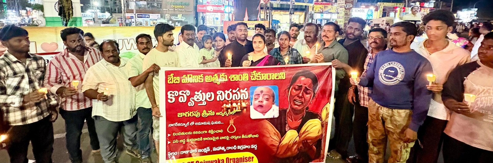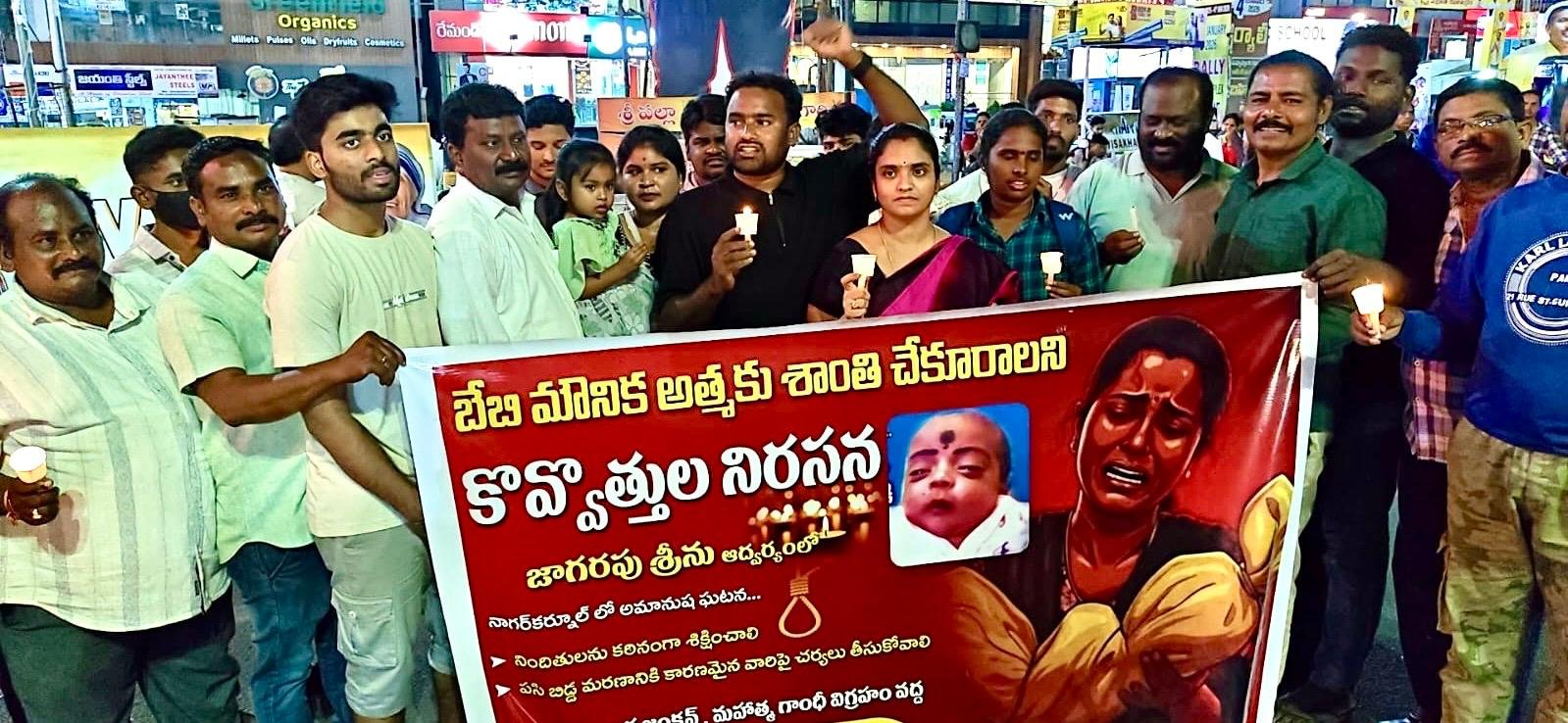 బేబీ మౌనిక ఆత్మశాంతికి గాజువాకలో కొవ్వొత్తుల నిరసన