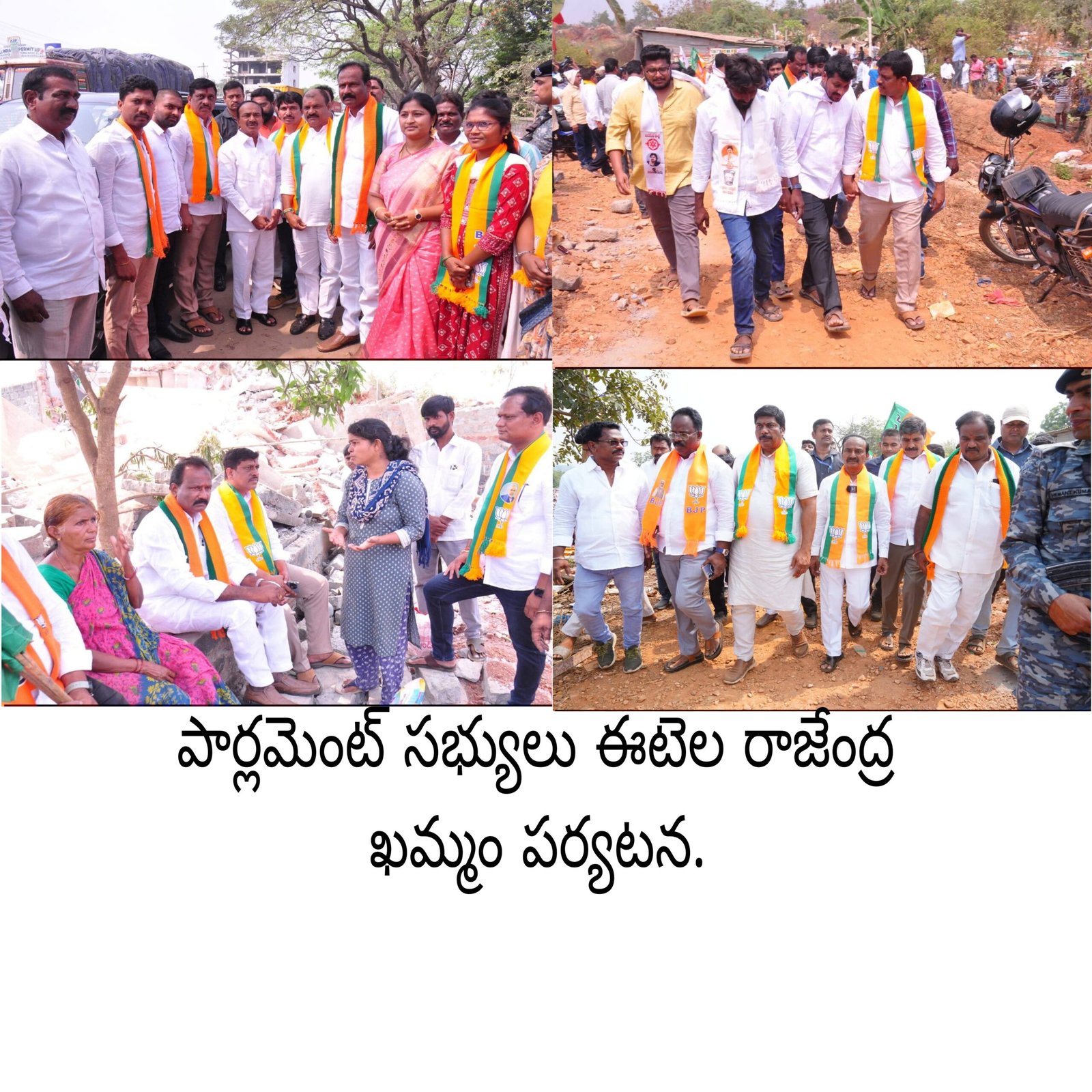 ఖమ్మం వెలుగుమట్ల భూదాన్ భూముల బాధితులను బీజేపీ జాతీయ నేత, మల్కాజ్గిరి పార్లమెంట్ సభ్యులు ఈటెల రాజేందర్ శనివారం పరామర్శించారు. ఖమ్మం చేరుకున్న ఆయనకు బీజేపీ ఖమ్మం జిల్లా మాజీ అధ్యక్షులు గల్లా సత్యనారాయణ వరంగల్ క్రాస్రోడ్ వద్ద సాధర స్వాగతం పలికారు.