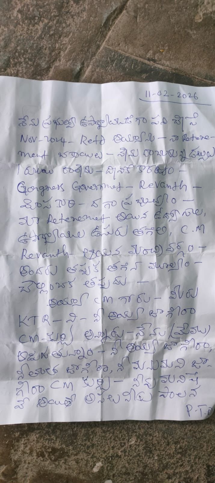 మంచిర్యాల జిల్లా లక్సెట్టిపేట మున్సిపాలిటీలోని 14వ వార్డు బ్యాలెట్ బాక్సులో, తమకు రిటైర్మెంట్ బెనిఫిట్స్ ఇవ్వాలని రేవంత్ రెడ్డికి లేఖ రాసిన రిటైర్డ్ ఉద్యోగి
