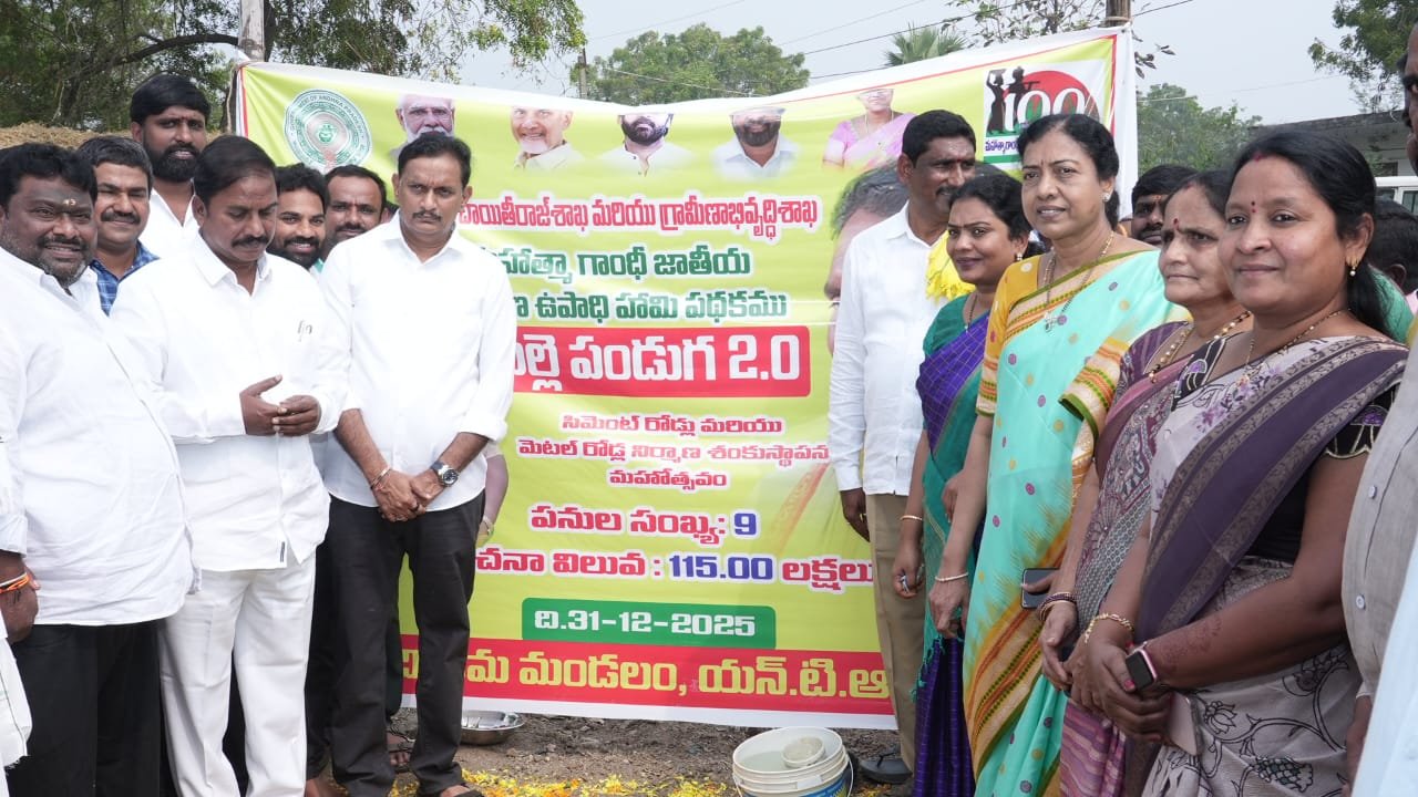 పంచాయితీరాజ్, గ్రామీణాభివృద్ధి శాఖల ఆధ్వర్యంలో మహాత్మ గాంధీ జాతీయ గ్రామీణ ఉపాధి హామి పథకం (ఎంజీఎన్ఆర్ఈజీఎస్), పల్లె పండుగ 2.0 కార్యక్రమంలో భాగంగా నందిగామ మండలం మునగచర్ల గ్రామంలో అభివృద్ధి పనులకు శంకుస్థాపన మహోత్సవం ఘనంగా నిర్వహించారు. కాంపౌండ్ వాల్స్, సిమెంట్ రోడ్లు, మెటల్ రోడ్ల నిర్మాణాలకు సంబంధించిన మొత్తం 9 పనులకు శంకుస్థాపన చేయగా, వీటి అంచనా వ్యయం రూ.115 లక్షలుగా అధికారులు తెలిపారు.ఈ కార్యక్రమానికి ఎన్టీఆర్ జిల్లా తెలుగుదేశం పార్టీ అధ్యక్షురాలు గద్దె అనురాధ, విజయవాడ పార్లమెంట్ సభ్యులు కేశినేని శివనాథ్ (చిన్ని), జగ్గయ్యపేట ఎమ్మెల్యే శ్రీరాం రాజగోపాల్ తాతయ్య, విజయ డైరీ చైర్మన్ చలసాని ఆంజనేయులు కలిసి ఆంధ్రప్రదేశ్ ప్రభుత్వ విప్, ఎమ్మెల్యే తంగిరాల సౌమ్య ముఖ్య అతిథులుగా పాల్గొన్నారు.ఈ సందర్భంగా ఎమ్మెల్యే తంగిరాల సౌమ్య మాట్లాడుతూ, పల్లె పండుగ 2.0 ద్వారా గ్రామీణ ప్రాంతాల్లో మౌలిక వసతుల అభివృద్ధికి ప్రభుత్వం ప్రత్యేక ప్రాధాన్యత ఇస్తోందని తెలిపారు. రోడ్లు, కాంపౌండ్ వాల్స్ వంటి సదుపాయాలతో గ్రామాల రూపురేఖలు మారతాయని, ఉపాధి హామి పథకం ద్వారా గ్రామీణ కార్మికులకు ఉపాధితో పాటు శాశ్వత ఆస్తుల సృష్టి జరుగుతుందన్నారు.
