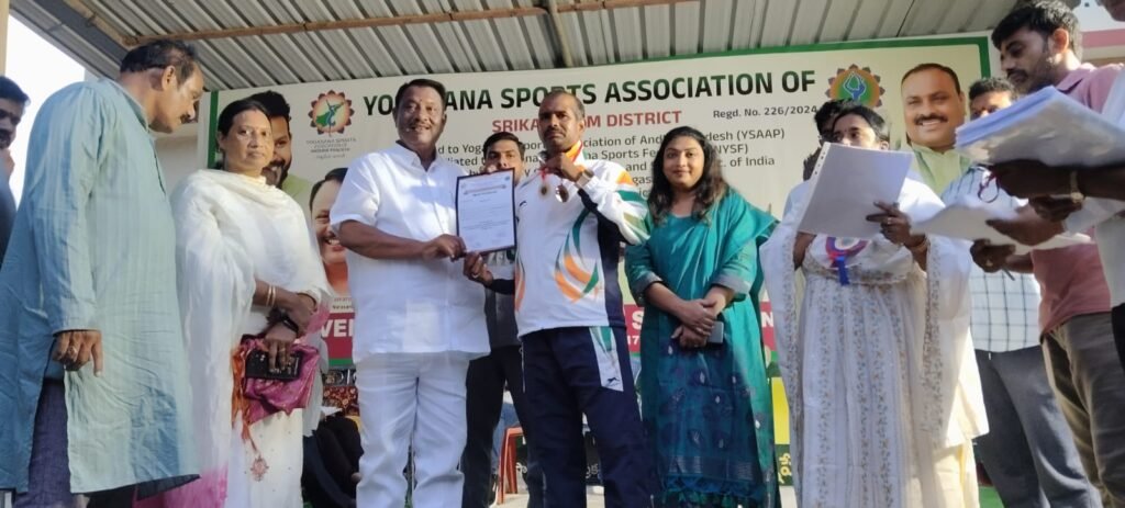 శ్రీకాకుళం జిల్లా, నరసన్నపేట:స్థానిక గవర్నమెంట్ హైస్కూల్లో నిర్వహించిన జిల్లాస్థాయి యోగాసన స్పోర్ట్స్ పోటీల్లో బొమ్మాలి కాగేశ్వరరావు అనే రిటైర్డ్ ఆర్మీ ఉద్యోగి గొప్ప విజయాన్ని సాధించారు. 45-55 సంవత్సరాల వయోపరిమితిలో బ్యాంక్ బెండ్ మరియు హ్యాండ్ బ్యాలెన్స్ విభాగాల్లో ఆయన రెండు గోల్డ్ మెడల్స్ గెలుచుకున్నారు.బొమ్మాలి కాగేశ్వరరావు సాధారణ కుటుంబంలో పుట్టి, భారత ఆర్మీలో సేవలందిస్తూ అనేక దేశాల్లో పర్యటించారు. ప్రస్తుతం నరసన్నపేటలో కులమతాలకు అతీతంగా, పేద–ధనిక భేదం లేకుండా, విద్యార్థులకు మరియు యువతకు ఉచితంగా ఫిట్నెస్ శిక్షణ అందిస్తున్నారు.ప్రత్యేకంగా పంజాబ్కు చెందిన ఘట్కా అనే సంప్రదాయ ఆటకు ఆయన డైరెక్టర్గా వ్యవహరిస్తున్నారు. 18 సంవత్సరాల పైబడిన విద్యార్థులకు ఎలాంటి పారితోషికం లేకుండా ఉచితంగా శిక్షణ ఇచ్చి వారి జీవితాలను వెలుగులోకి తీసుకువచ్చే మహనీయునిగా ఆయన నిలుస్తున్నారు.ఈ సేవా కార్యక్రమంలో రిటైర్డ్ ఆర్మీ వ్యక్తి సురపు సురేష్ కూడా కాగేశ్వరరావుకు తోడుగా సేవలందిస్తున్నారు. ఈ ఇద్దరి సేవలు శ్రీకాకుళం జిల్లాకే గర్వకారణంగా నిలుస్తున్నాయి.ఈ కార్యక్రమంలో అవార్డు గ్రహీతలను సన్మానించేందుకు నరసన్నపేట శాసనసభ్యులు బగ్గు రమణమూర్తి, తెలుగుదేశం పార్టీ సోషల్ మీడియా సమన్వయకర్త బగ్గు అర్చన, పలువురు సీనియర్ నాయకులు మరియు కార్యకర్తలు హాజరయ్యారు.