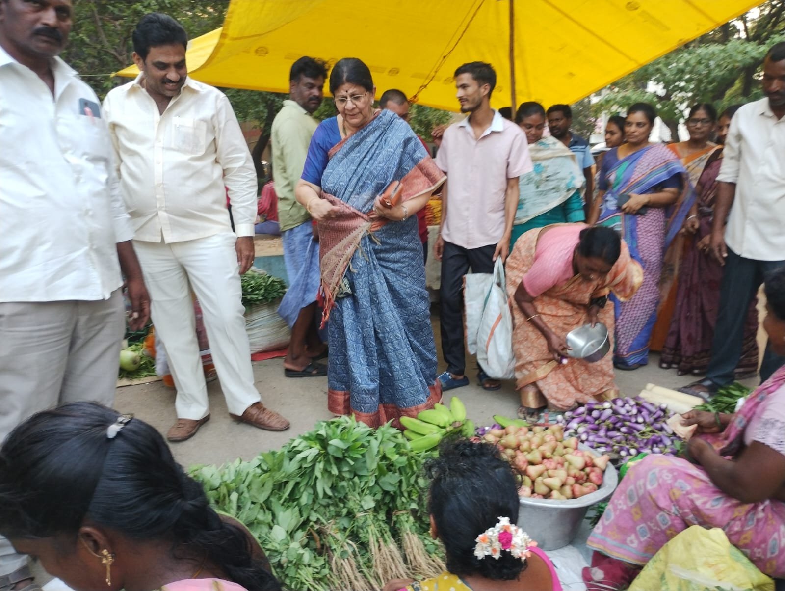వారపు సంతలో బొజ్జల బృందమ్మ సందడి – స్వచ్ఛత పాటించాలని విజ్ఞప్తి