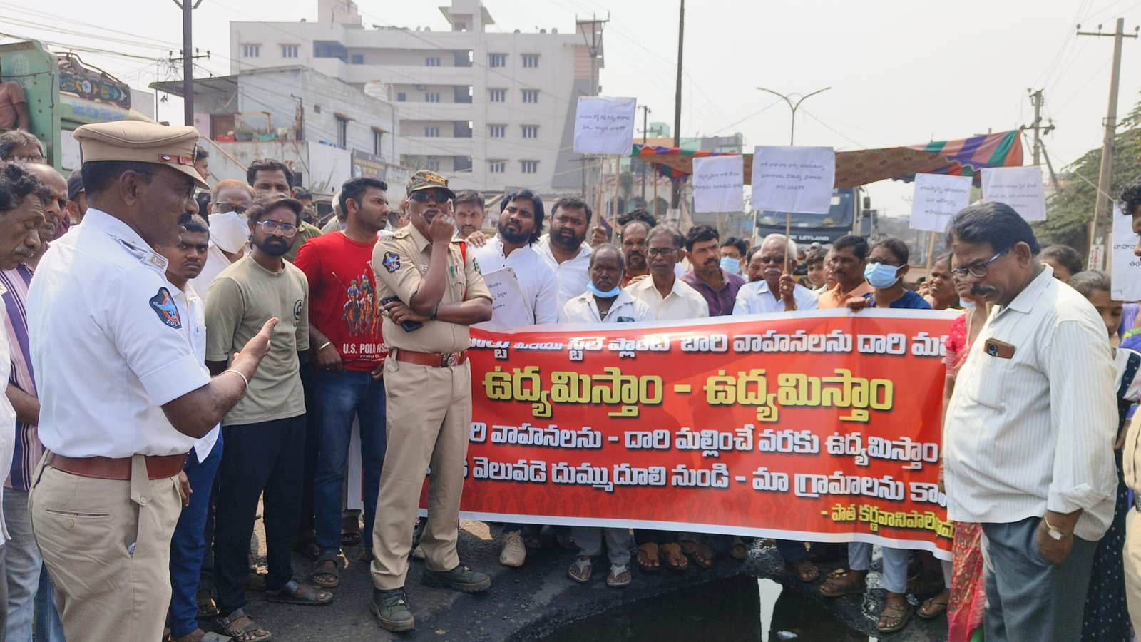 భారీ వాహనాల నుంచి ఎగిసిపడుతున్న బొగ్గు,దుమ్ము,దూళి కారణంగా జీవనం దుర్భరంగా మారిందని కర్నవాణిపాలెం గ్రామ ప్రజలు ఆగ్రహం వ్యక్తం చేశారు.గంగవరం పోర్ట్కు చెందిన గంగవరం పోర్టు మరియు స్టీల్ ప్లాంట్ కు రోజువారీగా వెళ్తున్న భారీ ట్రక్కుల రాకపోకలతో గ్రామం మొత్తం కాలుష్య మబ్బులో కూరుకుపోతుందని ఆరోపించారు.ఈ నేపథ్యంలో గ్రామస్తులు వై-జంక్షన్ వద్ద రోడ్డుపై బైఠాయించి ఆందోళన చేపట్టారు.బొగ్గు లోడుతో వెళ్తున్న ట్రక్కులను అడ్డుకుని కొంతసేపు రాకపోకలను నిలిపివేశారు.ట్రక్కులకు కవర్లు లేకుండా బొగ్గు రవాణా చేయడం,అధిక వేగంతో దూసుకెళ్లడం వల్ల బొగ్గు కణాలు గాలిలో వ్యాపించి ఇళ్లలోకి చేరుతున్నాయని తెలిపారు.దీంతో చిన్నపిల్లలు,వృద్ధులు శ్వాసకోశ సమస్యలు,అలర్జీలు,కంటి ఇబ్బందులతో బాధపడుతున్నారని మహిళలు ఆవేదన వ్యక్తం చేశారు.గ్రామంలో ఇప్పటికే అనేక మంది అనారోగ్యానికి గురయ్యారని,వైద్య ఖర్చులు భరించలేక ఇబ్బందులు పడుతున్నామని వాపోయారు.వెంటనే రోడ్లపై నీటిచల్లి దుమ్ము నియంత్రణ చర్యలు చేపట్టాలని,బొగ్గు రవాణా వాహనాలకు కవర్లు తప్పనిసరి చేయాలని,గ్రామం గుండా కాకుండా ప్రత్యామ్నాయ మార్గం కల్పించాలని డిమాండ్ చేశారు.సమాచారం అందుకున్న పోలీసులు సంఘటన స్థలానికి చేరుకుని గ్రామస్తులతో చర్చలు జరిపారు.సమస్యను సంబంధిత ఉన్నతాధికారుల దృష్టికి తీసుకెళ్తామని హామీ ఇవ్వడంతో ఆందోళనను తాత్కాలికంగా విరమించారు.అయితే తక్షణ చర్యలు చేపట్టకపోతే ఉద్యమాన్ని మరింత ఉధృతం చేస్తామని గ్రామస్తులు హెచ్చరించారు.