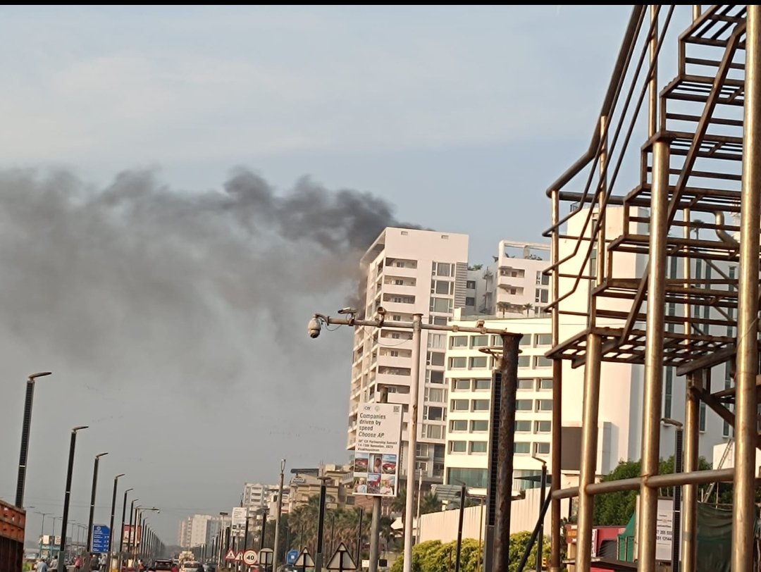 విశాఖపట్నం నగరంలోని ప్రముఖ పర్యాటక కేంద్రమైన ఆర్కే బీచ్ సమీపంలో బుధవారం ఉదయం భారీ అగ్నిప్రమాదం సంభవించింది. బీచ్కు ఎదురుగా ఉన్న ప్రాంతంలో గల రాధ బీచ్ రెసిడెన్సీ అనే అపార్ట్మెంట్ కాంప్లెక్స్లోని ఆరవ అంతస్తులో ఈ ఘటన చోటుచేసుకుంది. ప్రమాదం జరిగిన వెంటనే మంటలు భారీగా ఎగిసిపడటంతో ఆ ప్రాంతమంతా దట్టమైన పొగ కమ్ముకుంది. దీంతో భయాందోళన వాతావరణం నెలకొంది. ఈ సమాచారం అందుకున్న వెంటనే అగ్నిమాపక సిబ్బంది హుటాహుటిన సంఘటనా స్థలానికి చేరుకున్నారు. మంటలను నియంత్రించి, వాటిని ఇతర ఫ్లాట్లకు వ్యాపించకుండా అదుపులోకి తీసుకురావడానికి సిబ్బంది తీవ్రంగా శ్రమిస్తున్నారు.