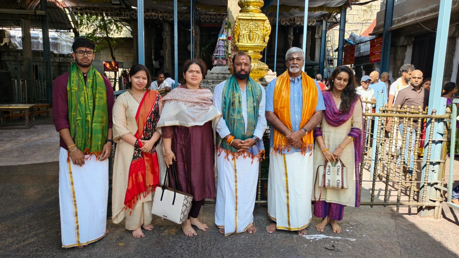 శ్రీకాళహస్తి, జనవరి 31, పున్నమి న్యూస్: శ్రీకాళహస్తీశ్వర స్వామి వారి దర్శనార్ధం సినీ దర్శకులు గోపాల్ రెడ్డి, వారితో పాటు కనిగిరి తెలుగుదేశం పార్టీ నేత నరసారెడ్డి కుటుంబ సమేతంగా విచ్చేశారు. వీరికి ఆలయ అధికారులు సాదరంగా ఆహ్వానించి వారికి రాహు కేతు పూజలు, శ్రీ స్వామి, అమ్మవార్ల ప్రత్యేక దర్శన ఏర్పాట్లు, అనంతరం శ్రీ మేధా గురు దక్షణమూర్తి సన్నిధిలో వేద ఆశీర్వచనం చేయించి ముక్కంటి తీర్ధ ప్రసాదాలు అందజేయడం జరిగినది. ఈ కార్యక్రమంలో ఆలయ అధికారులు, సిబ్బంది పాల్గొన్నారు.