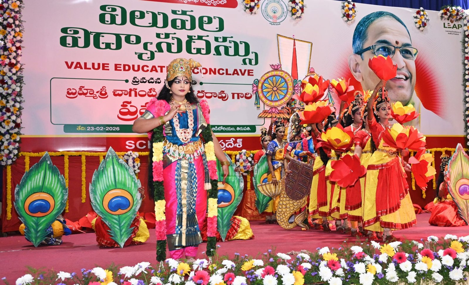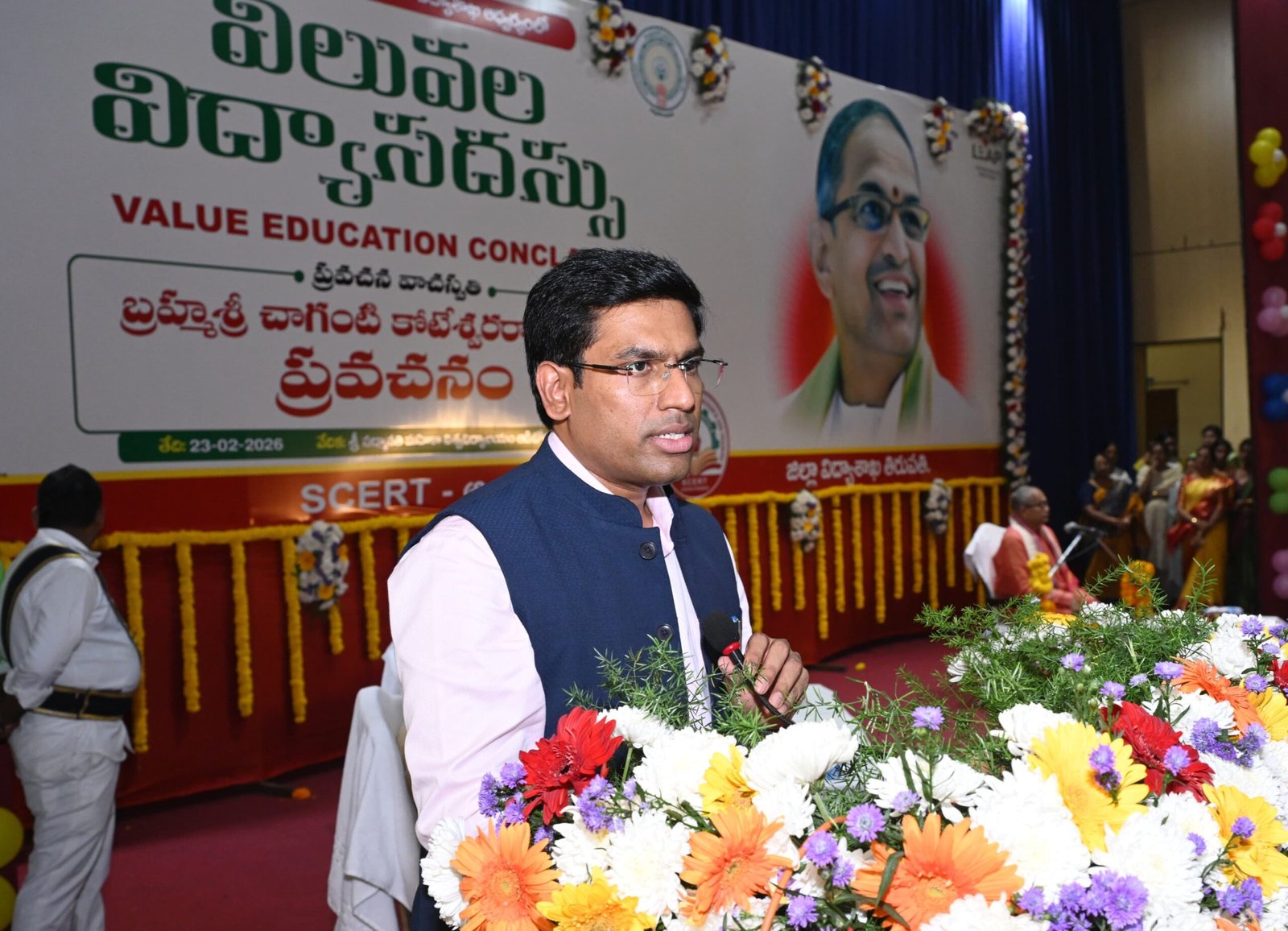 సోమవారం మధ్యాహ్నం స్థానిక శ్రీ పద్మావతి మహిళా విశ్వ విద్యాలయం ఆడిటోరియంలో పాఠశాల విద్యాశాఖ ఆధ్వర్యంలో నిర్వహించిన విలువల విద్యా సదస్సు లో జిల్లా కలెక్టర్ డా. ఎస్. వెంకటేశ్వర్ ప్రముఖ ఆధ్యాత్మిక వేత్త, బ్రాహ్మశ్రీ చాగంటి కోటేశ్వరరావు తో కలిసి పాల్గొన్నారు.