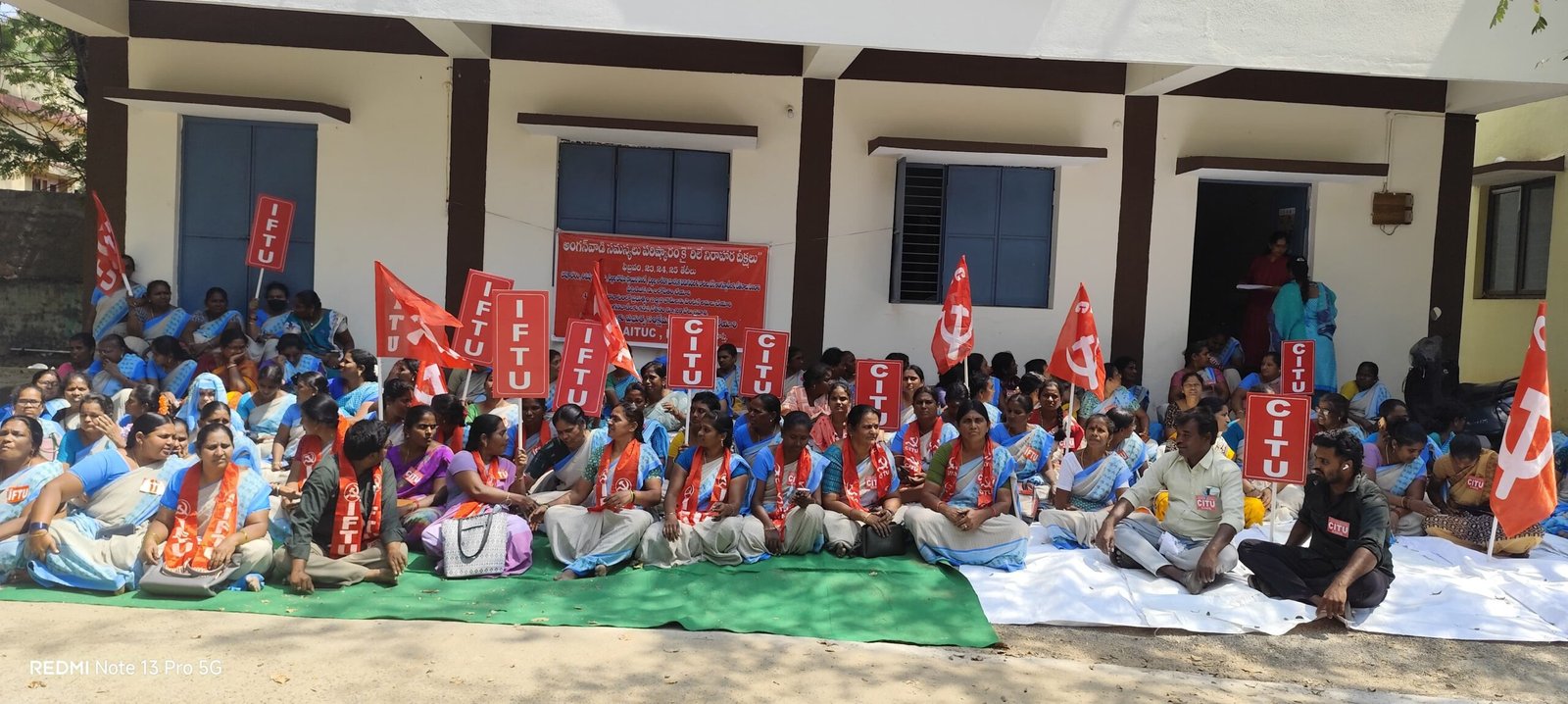 శ్రీకాళహస్తి పున్నమి న్యూస్, ఫిబ్రవరి 23: మండల కేంద్రంలోని స్థానిక ఐ.సి.డి.ఎస్ కార్యాలయం ఎదుట సోమవారం ప్రజా సంఘాలైన సి.ఐ.టి.యు, ఐ.ఎఫ్.టి.యు ఆధ్వర్యంలో రిలే నిరాహార దీక్ష కార్యక్రమాన్ని చేపట్టారు. ఈ సందర్భంగా సి.ఐ.టి.యు నాయకులు పెనగడం గురవయ్య మాట్లాడుతూ.. ఏ పార్టీ అధికారంలో ఉన్నప్పటికీ పల్లె, పట్టణం అనే తేడా లేకుండా పోషక ఆహారం, శిశువుల ఆరోగ్యం, పిల్లల పోషణ స్థాయిని పెంచి పిల్లల శారీరక మానసిక పెరుగుదలకు బాటలు వేసే అంగన్వాడీల న్యాయమైన సమస్యలను పరిష్కరించడంలో విఫలమవుతున్నారని గత వైసీపీ ప్రభుత్వంలో అంగన్వాడీలు వారి న్యాయమైన సమస్యలను పరిష్కరించాలంటూ 42 రోజులు దీక్షలు నిర్వహించిన సమయంలో ప్రతిపక్షంలో ఉన్న తెలుగుదేశం పార్టీ నాయకులు వారి దీక్ష శిబిరాల వద్దకు వచ్చి మా పార్టీ అధికారంలోకి రాగానే నీ న్యాయమైన ప్రతి ఒక్క సమస్యను పరిష్కరిస్తామని తెలిపారని ప్రస్తుతం అధికారంలో ఉన్న కూటమి ప్రభుత్వం ఎన్నికలకు ముందు అంగన్వాడీ కార్యకర్తలు ఎదుర్కొంటున్న ప్రతి ఒక్క సమస్యను పరిష్కరిస్తామని హామీ ఇచ్చి అధికారంలోకి వచ్చి సుమారు 20 నెలలు కాలం గడిచినప్పటికీ అంగన్వాడీల సమస్యలను పరిష్కరించకపోవడం ఎంతో దుర్మార్గమని సుప్రీంకోర్టు ఇచ్చిన తీర్పు ప్రకారం సమాన పనికి సమాన వేతనం కింద ప్రతి ఒక్క అంగన్వాడీ కార్యకర్తకు 26 వేల రూపాయల జీతం ఇవ్వాలని, ప్రభుత్వ సంక్షేమ పథకాలు వర్తింపజేయాలని, మినీ సెంటర్లను మెయిన్ సెంటర్ గా మార్చాలని ప్రజా సంఘాల తరఫున డిమాండ్ చేశారు. ఈనెల 25, 26, 27వ తేదీలలో జిల్లా కలెక్టర్ కార్యాలయాల ఎదుట రిలే దీక్షలు గురవయ్య పేర్కొన్నారు. . ఈ కార్యక్రమంలో సి.ఐ.టి.యు నాయకులు గంధం మణి, రాజా, రేవతి, పుష్ప, సక్కుబాయి, ఐ. ఎఫ్.టి.యు నాయకులు జాకీర్, కల్పన తదితరులు పాల్గొన్నారు.