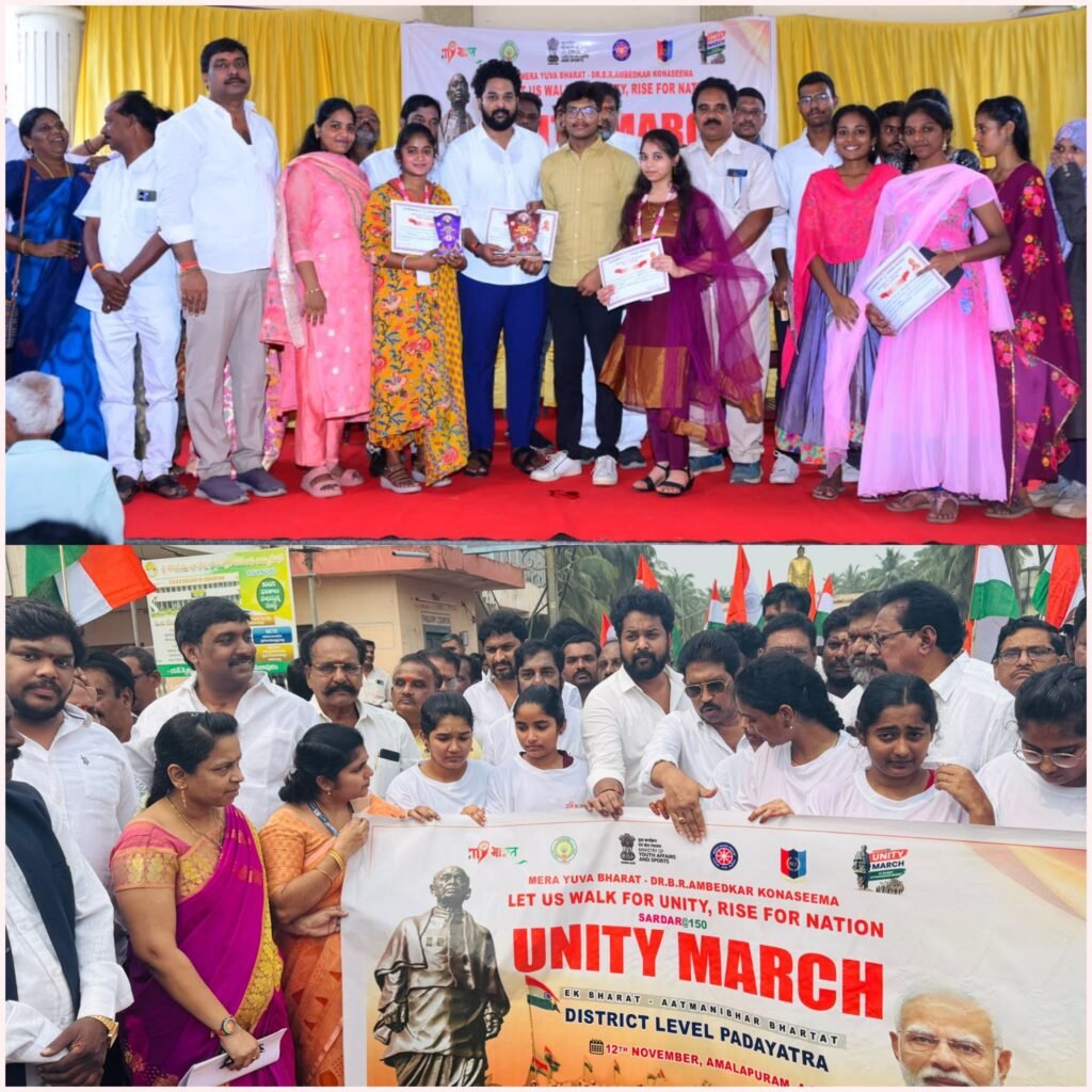 సీనియర్ జర్నలిస్ట్ రమణ: సర్దార్ వల్లభాయ్ పటేల్ ఐఖ్యత స్ఫూర్తితో అందరూ ముందుకు సాగాలని అమలాపురం ఎంపీ గంటి హరీష్ బాలయోగి పిలుపునిచ్చారు. పట్టణాలలోని ఎస్ కె బీ ఆర్ కాలేజీ నుండి గడియార స్తంభం సెంటర్ వరకూ జరిగిన రన్ ఫర్ యూనిటీ కార్యక్రమంలో ఎంపీ హరీష్, కలెక్టర్, అధికారులు కూటమి నాయకులు, విద్యార్థులు భారీగా పాల్గొన్నారు. ర్యాలీ అనంతరం గడియార స్తంభం వద్ద జరిగిన సమావేశంలో హరీష్ మాట్లాడుతూ వల్లభాయ్ పటేల్ పుట్టిన రోజున జాతీయ ఐక్యతా దినోత్సవం జరుపుకోవడం ఆనవాయితీగా వస్తుందని అన్నారు. దేశ ఐఖ్యతను ప్రపంచానికి చాటేందుకే ప్రధాని నరేంద్ర మోదీ ఈ కార్యక్రమాన్ని చేపట్టారని అదే ఐఖ్యతను చాటేందుకు రాష్ట్రంలో ముఖ్యమంత్రి నారా చంద్రబాబునాయుడు, ఉప ముఖ్యమంత్రి పవన్ కళ్యాణ్ చాటుతున్నారన్నారు. 500 కి పైగా సంస్థానాలను ఏకం చేసి దేశ ఐక్యతను నిలపడంతో పటేల్ ప్రత్యేక భూమిక పోషించారన్నారు. అదే స్ఫూర్తితో యువత, విద్యార్థులు తీసుకుని వారి గమ్య స్థానాలకు చేరుకోవాలన్నారు. ఇందుకోసమే కూటమి ప్రభుత్వం కృషి చేస్తోందని ఎంపీ హరీష్ బాలయోగి అన్నారు.