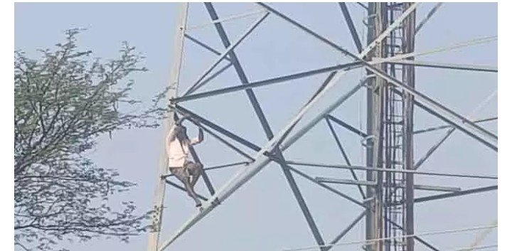 సెల్ టవర్ ఎక్కిన రైతు సమస్యలు పరిష్కరించాలని డిమాండ్ చేస్తూ ఆందోళన గ్రామంలో ఉద్రిక్త పరిస్థితి అధికారులు, పోలీసులు సంఘటన స్థలానికి చేరుకుని రైతుతో చర్చలు