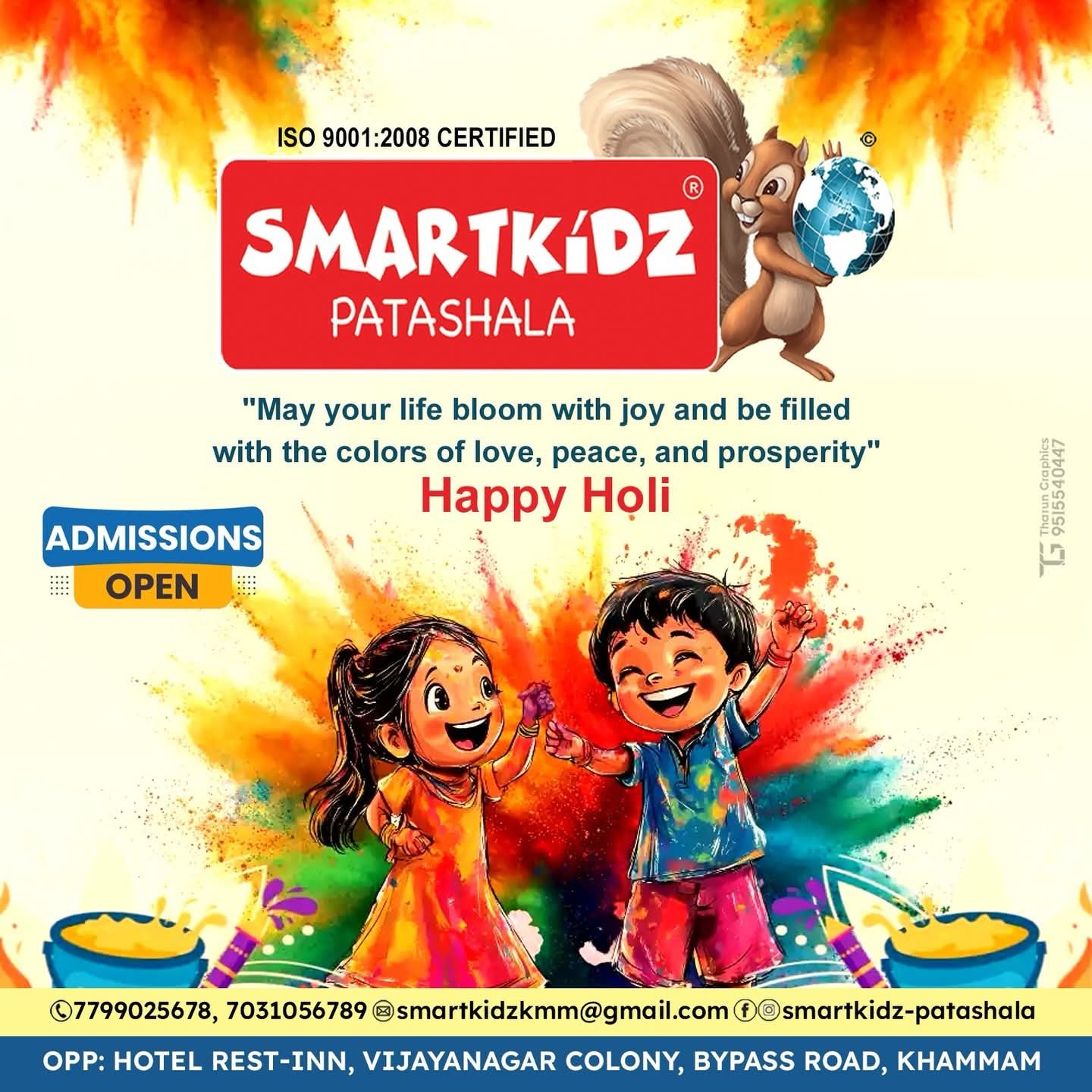 హోలీ పర్వదినాన్ని పురస్కరించుకుని స్మార్ట్ కిడ్స్ పాఠశాల యాజమాన్యం విద్యార్థులు, తల్లిదండ్రులు మరియు ఉపాధ్యాయులకు హృదయపూర్వక శుభాకాంక్షలు తెలియజేశారు.
