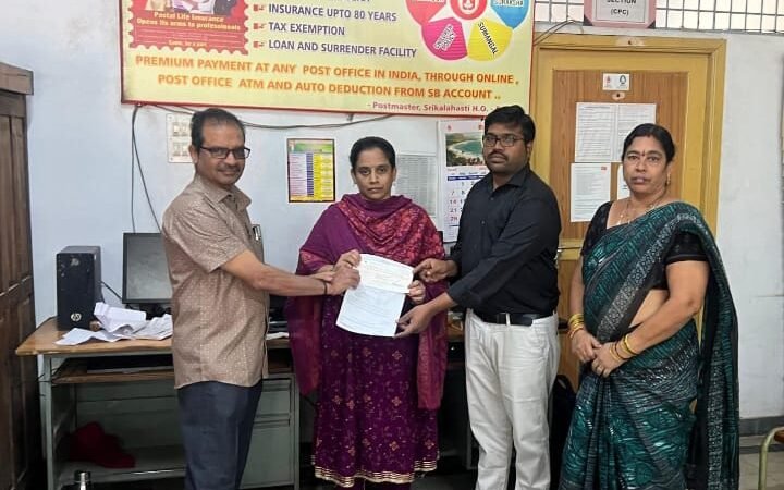 శ్రీకాళహస్తి పున్నమి న్యూస్, ఫిబ్రవరి 13: శ్రీకాళహస్తి తపాలా శాఖలో బీమా తీసుకోవడం వలన పేద కుటుంబాన్ని ఆదుకున్న సంఘటన చోటుచేసుకుంది. శ్రీకాళహస్తి సబ్ డివిజన్ తపాలా శాఖ ఐపీఓ బాలాజీ కథనం వివరాలు అకస్మాత్తుగా పాలసీదారుడు మరణించడంతో ఓ పేద కుటుంబానికి పోస్టల్ లైఫ్ ఇన్సూరెన్స్ (పిఎల్ఐ) ఆదుకుంది. శ్రీకాళహస్తి పట్టణంలోని బంగారమ్మ గుడి కాలనీకి చెందిన వి వెంకటాద్రి తపాలా శాఖలో జూలై 22వ సంవత్సరంలో 20 లక్షలు పాలసీ తీసుకున్నాడు. ఏడాదికి రూ. 1,28,040 చొప్పున రెండు సంవత్సరాలు రూ. 2,56,080 లక్షలు ప్రీమియం చెల్లించాడు. అయితే అతను అకస్మాత్తుగా మృతి చెందాడు. ఈ నేపథ్యంలో అతని భార్య పిల్లలు అయోమయ స్థితిలోకి వెళ్లిపోయారు. జీవనం గడవడం కూడా కష్టతరంగా మారింది. శ్రీకాళహస్తి సబ్ డివిజన్ తపాలా శాఖ ఐపీఓ బాలాజీ, శ్రీకాళహస్తి హెడ్ పోస్ట్ ఆఫీస్ పోస్ట్మాస్టర్ రాంబాబు మృతిని భార్య అలేఖ్యకు శ్రీకాళహస్తి తపాలా శాఖ కార్యాలయంలో శుక్రవారం నాడు రూ. 23,02,001 లక్షల బీమా చెక్కును అందజేశారు. ఈ సందర్భంగా మృతుడు భార్య అలేఖ్య మాట్లాడుతూ.. తమ భర్త తపాలా శాఖలో పాలసీ వేయడం వలన నేడు తమ కుటుంబానికి ఎంతో ఆసరాగా తోడ్పడిందని ఆమె తెలిపారు. అనంతరం తపాలా శాఖ ఐపీఓ బాలాజీ మాట్లాడుతూ.. ప్రతి ఒక్కరూ తపాలా శాఖలో పి ఎల్ ఐ కానీ ఆర్ పి ఎల్ ఐ బీమా తీసుకోవడం వలన వారి కుటుంబానికి అండగా ఉంటుందని గ్రామీణ స్థాయిలో ఉన్న ప్రజలు తమ గ్రామాల్లో ఉన్న బ్రాంచ్ పోస్ట్ ఆఫీస్ లో తమ సిబ్బందిని కలిస్తే పూర్తి సమాచారం అందిస్తారని ఈ అవకాశాన్ని ప్రతి ఒక్కరు సద్వినియోగం చేసుకోవాలని ఆయన పిలుపునిచ్చారు.