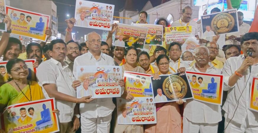 ఆంధ్రప్రదేశ్ శాశ్వత రాజధాని అమరావతి అని, 5 కోట్ల ప్రజల ఆకాంక్ష .. అమరావతి అని రాష్ట్ర పబ్లిక్ అకౌంట్స్ కమిటీ చైర్మన్ ఎమ్మెల్యే పులపర్తి రామాంజనేయులు (అంజిబాబు) అన్నారు. భీమవరం ప్రకాశం చౌక్ సెంటర్ లో గురువారం రాత్రి కూటమి నాయకులు కార్యకర్తలు అభిమానులు వీర మహిళలు తెలుగు మహిళలు, పట్టణ ప్రజలతో సంబరాలను నిర్వహించారు. బాణా సంచా కాల్పులతో .. జై అమరావతి.. జై జై అమరావతి నినాదాలతో ప్రకాశం చౌక్ సెంటర్ అంతా మారుమ్రోగింది. ఎమ్మెల్యే అంజిబాబు మాట్లాడుతూ రైతుల త్యాగానికి, ప్రజల ఆకాంక్షలకు దక్కిన గౌరవం రాజధాని అమరావతి అని, ఇది ప్రజా రాజధాని అమరావతి ఆంధ్రుల ఆత్మగౌరవానికి ప్రతీక అని అన్నారు. లోక్ సభలో అమరావతికి చట్టబద్ధత కల్పించే బిల్లు ఆమోదం పొందడం ఆంధ్రులకు దక్కిన గౌరవమన్నారు. అమరావతి ఇక అజేయం, అజరామరమని, స్వర్ణాంధ్ర నిర్మాణంలో ఇది ఓ కీలక మైలురాయి అని అన్నారు. ఇది రాష్ట్ర ప్రజల ఆకాంక్షలకు, రైతుల త్యాగాలకు (33,000 ఎకరాల భూసమీకరణ) దక్కిన చారిత్రాత్మక విజయమని అన్నారు. వైసీపీ నాయకులు ఏదో చేస్తామంటే ఏమి మారాదని, శాశ్వత రాజధాని అమరావతి అని అన్నారు. రాజ్యసభ మాజీ సభ్యురాలు, టిడిపి పొలిట్ బ్యూరో సభ్యురాలు తోట సీతారామలక్ష్మి మాట్లాడుతూ అమరావత్ రాజధానిగా ఎన్నికవడం శుభ సూచకమని, జై అమరావతి అని అన్నారు. అంధకారంలో పడిన అమరావతి భవిష్యత్ ఇక దేదీప్యమానంగా ప్రకాశించేందుకు మార్గం సుగమమైందని, ఆంధ్రప్రదేశ్ శాశ్వత రాజధానిగా అమరావతికి చట్టబద్ధత కల్పిస్తూ కేంద్రం ప్రవేశపెట్టిన రాష్ట్ర పునర్విభజన చట్ట సవరణ బిల్లుకు లోక్ సభ ఆమోదం తెలిపిందన్నారు. అనంతరం జై అమరావతి జై జై అమరావతి అంటూ నాయకులు కార్యకర్తలు అభిమానులు వీర మహిళలు తెలుగు మహిళలు నినాదాలు చేస్తూ సంబరాలు చేసుకున్నారు. కార్యక్రమంలో వివిధ కార్పోరేషన్ చైర్మన్లు, డైరెక్టర్లు, కూటమి నాయకులు, కార్యకర్తలు, అభిమానులు, వీర మహిళలు, తెలుగు మహిళలు పాల్గొన్నారు.
