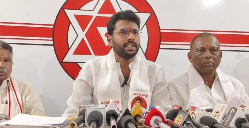 పవన్ కళ్యాణ్ పై బెదిరింపులు చేస్తే ఊరుకోము: జనసేన నేత కాకు మురళి రెడ్డి నెల్లూరు: అన్నీ మతాలను గౌరవించే వ్యక్తి పవన్క ళ్యాణ్అ ని, అలాంటి నాయకుడిపై విద్వేషపూరిత వ్యాఖ్యలు చేస్తే ప్రజలు సహించరని జనసేన నాయకుడు కాకు మురళి రెడ్డి హెచ్చరించారు. ఒక క్రైస్తవ పాస్టర్ పవన్ కళ్యాణ్ను నరుకుతామని చేసిన వ్యాఖ్యల నేపథ్యంలో నెల్లూరు జిల్లా జనసేన పార్టీ కార్యాలయంలో మీడియా సమావేశం నిర్వహించారు. ఈ సందర్భంగా కాకు మురళి రెడ్డి, గునుకుల కిషోర్, నూనె మల్లిఖార్జున్ మాట్లాడుతూ సనాతన ధర్మం పై దాడులు జరుగుతున్నాయని, తిరుమల లడ్డూ అంశంపై పవన్ కళ్యాణ్ బలంగా స్పందించినందుకు ఆయనకు ప్రజల్లో పెరుగుతున్న ఆదరణను చూసి కొందరు రాజకీయంగా కుట్రలు చేస్తున్నారని ఆరోపించారు. అంబటి రాంబాబు ద్వారా కాపులను, బీసీ పార్టీ నేత రామచంద్ర యాదవ్ ద్వారా బీసీలను రెచ్చగొట్టే ప్రయత్నం జరిగిందని, అవి ఫలించకపోవడంతో ఇప్పుడు మత రాజకీయాలను ప్రోత్సహించేలా క్రైస్తవ పాస్టర్ను ముందుకు తెచ్చారని విమర్శించారు. డానీయల్ కెనడి అనే పాస్టర్ పవన్ కళ్యాణ్ను నరుకుతామని చేసిన వ్యాఖ్యల వెనుక వైస్సార్కాం గ్రెస్ పార్టీ కుట్ర ఉందని వారు ఆరోపించారు. కులాలను కలిపే ఆలోచన, మత ప్రస్తావనలేని రాజకీయ సిద్ధాంతాలను పాటించే పార్టీ జనసేన అని పేర్కొన్నారు. ఆంధ్రప్రదేశ్ అభివృద్ధి కోసం పని చేస్తున్న పవన్ కళ్యాణ్ జోలికి, సర్వమతాలను గౌరవించే సనాతన ధర్మం జోలికి వస్తే తీవ్ర పరిణామాలు ఉంటాయని హెచ్చరించారు. ఈ కార్యక్రమంలో జనసేన నాయకులు ఏటూరి రవికుమార్, ఆఫీస్ ఇంచార్జి జమీర్, మహేష్ శర్మ, హరికృష్ణ, విజయ్, వీరమహిళలు వాణి తదితరులు పాల్గొన్నారు.
