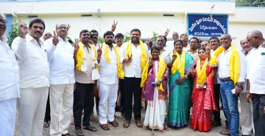శ్రీకాళహస్తి నియోజకవర్గం ఏర్పేడులో మండలానికి చెందిన 9మంది వైసీపీ ఎంపీటీసీలు తెలుగుదేశం పార్టీ తీర్థం పుచ్చుకోగా ఎంపీపీ పదవిని తెదేపా కైవసంచేసుకుంది ఎంపీపీగా ఎన్నికైన ఆదిలక్ష్మి, టిడిపికి భారీగా ఎంపీటీసీల మద్దత్తుతో కంగుతిన్న వైసీపీ. ఎన్నికైన వారిని శ్రీకాళహస్తి శాసనసభ్యులు బొజ్జల సుధీర్ రెడ్డి తెలుగుదేశం పార్టీ కండువా కప్పి పార్టీలోకి ఆహ్వానించారు. అనంతరం ప్రజాస్వామ్యబద్ధంగా సామరస్యంగా ఎటువంటి గొడవలకు తావు లేకుండా గత ప్రభుత్వంలో మాదిరి గందరగోళానికి గురి చెయ్యకుండా తొమ్మిది మంది ఎంపీటీసీలు అందరూ కలుసుకొని ఏకగ్రీవంగా పంగురు గ్రామానికి చెందిన ఆది లక్ష్మమ్మని ఎంపీపీగా ఎన్నుకున్నారు. ఈ కార్యక్రమంలో బీజేపీ రాష్ట్ర ఉపాధ్యక్షులు కోలా ఆనంద్, ఏర్పేడు టీడీపీ పార్టీ అధ్యక్షులు పేరం నాగరాజు నాయుడు,తెలుగుదేశం పార్టీ సీనియర్ నాయకులు పేరం ధనం జయులు నాయుడు గారు, చెంచయ్య నాయుడు గారు శివశంకరరెడ్డి గారు, పాపిరెడ్డి గారు, నైనూరు పున్నారావు గారు, ఏర్పేడు pacs ఛైర్మన్ మహేష్ రెడ్డి గారు, క్రిష్ణవేణి, రాఘవేంద్ర, శివాజీ రెడ్డి,గోపాల్ రెడ్డి చంద్రశేఖర్ నాయుడు, బాబు నాయుడు, గిరి నాయుడు, రవి నాయుడు, జగదీష్, కేశినేని సుబ్రహ్మణ్యం, రాచటి సుబ్రహ్మణ్యం, గుణాయాదవ్, రమణ, హేమాక్షి, మోహన్ రెడ్డి, రామదాసు, గోల్డుమెన్, నాగేష్, సురేష్, రాజా, వెంకయ్య, తాళ్లపాకు సుధాకర్ రెడ్డి, మునీశ్వర్, రమేష్ యాదవ్, శీను, నరసింహులు, సుధాకర్ నాయుడు, దినకర్ నాయుడు, మనోహర్ నాయుడు తదితర కూటమి నాయకులు, కార్యకర్తలు పెద్ద ఎత్తున పాల్గొన్నారు.