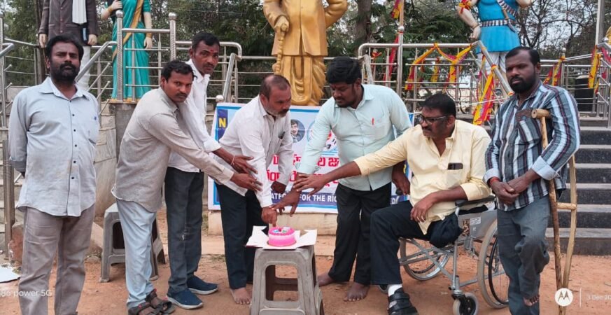 పున్నమి: రంగారెడ్డి జిల్లా: అంతర్జాతీయ దివ్యాంగుల దినోత్సవం సందర్భంగా రంగారెడ్డి జిల్లా షాద్నగర్ పట్టణంలోని ఎంపీడీవో కార్యాలయం ఎదుట వికలాంగుల హక్కుల జాతీయ వేదిక ఆధ్వర్యంలో బుధవారం ఘనంగా వేడుకలు నిర్వహించారు. కేక్ కట్ చేసి ఆపేయ అనురాగాలతో వేడుకలను జరుపుకున్నారు.జిల్లా అధ్యక్షులు ఆశన్నగారి భుజంగారెడ్డి, ప్రధాన కార్యదర్శి జేర్కొని రాజు నాయకత్వంలో జరిగిన ఈ కార్యక్రమంలో దివ్యాంగ సోదరులు పెద్ద సంఖ్యలో పాల్గొన్నారు.ఈ సందర్భంగా ఆశన్నగారి భుజంగారెడ్డి మాట్లాడుతూ…దివ్యాంగులను సమాజం బాధితులుగా కాకుండా సమాన భాగస్వాములుగా గుర్తించాలి. వారికి ఇతరులతో సమాన హక్కులు, అవకాశాలు, గౌరవం లభించాలి. కానీ ప్రస్తుత కేంద్ర, రాష్ట్ర ప్రభుత్వాలు దివ్యాంగుల సంక్షేమాన్ని పూర్తిగా విస్మరిస్తున్నాయి.దివ్యాంగుల కోసం ప్రవేశపెట్టిన పథకాలను రద్దు చేస్తూ, సమాన అవకాశాలు కల్పించడంలో ఘోరంగా విఫలమవుతున్నాయని తీవ్ర ఆవేదన వ్యక్తం చేశారు.అంతర్జాతీయ దివ్యాంగుల దినోత్సవ చరిత్రను గుర్తుచేస్తూ ఆయన మాట్లాడుతూ…1976లో ఐక్యరాజ్యసమితి 1981ని అంతర్జాతీయ దివ్యాంగుల సంవత్సరంగా, 1983-92 మధ్య కాలాన్ని దివ్యాంగుల దశాబ్దంగా ప్రకటించింది. 1992 నుంచి ప్రతి డిసెంబరు 3న ఈ దినోత్సవాన్ని ప్రపంచవ్యాప్తంగా జరుపుతున్నారు.దివ్యాంగుల గౌరవం, హక్కులు, శ్రేయస్సు కోసం అవగాహన పెంచడం, వారిని రాజకీయ, సామాజిక, ఆర్థిక, సాంస్కృతిక జీవనంలో భాగస్వాములను చేయడమే ఈ దినోత్సవ లక్ష్యమని వివరించారు.కళలు, విజ్ఞానం, క్రీడలు, ఆవిష్కరణలు , ఏ రంగంలోనైనా దివ్యాంగులు అద్భుతాలు సాధిస్తున్నారు.వారి సామర్థ్యాన్ని ప్రపంచానికి చాటి చెప్పడమే ఈ వేడుకల ఉద్దేశ్యం.కానీ ప్రభుత్వాలు ఈ సామర్థ్యాన్ని గుర్తించకుండా, వివక్షతతో వ్యవహరిస్తున్నాయని ఆవేదన వ్యక్తం చేశారు.ఇప్పటికైనా కేంద్ర, రాష్ట్ర ప్రభుత్వాలు దివ్యాంగుల కోసం ప్రకటించిన పథకాలను సంపూర్ణంగా అమలు చేయాలని, వివక్ష లేని సమాజ నిర్మాణం కోసం అందరూ కృషి చేయాలని డిమాండ్ చేశారు. ఈ కార్యక్రమంలో వికలాంగుల హక్కుల జాతీయ వేదిక జిల్లా నాయకులు మొగదాటి ప్రమోద్, దిర్షిణం శంకర్, మూర్తి, సీమ లక్ష్మణ్ తదితరులు పాల్గొన్నారు.