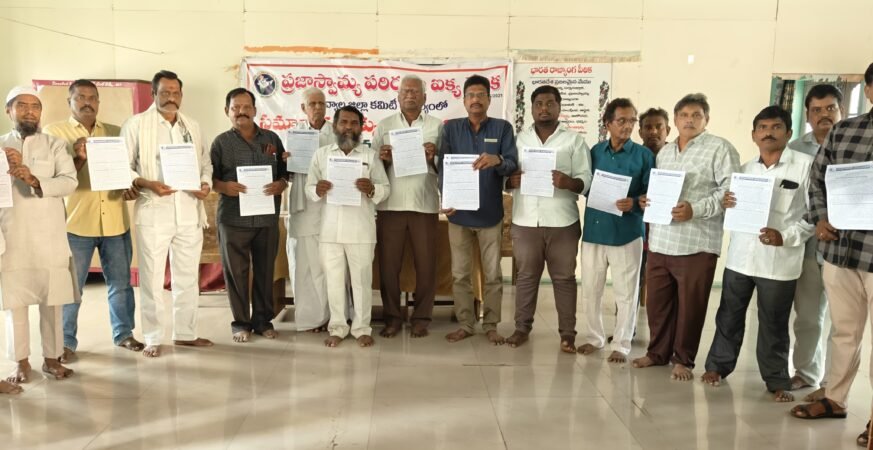 నంద్యాల పట్టణంలోని ప్రజాస్వామ్య పరిరక్షణ వేదిక జిల్లా కార్యాలయంలో భారత ఎన్నికల కమిషన్ పనితీరు ప్రజాస్వామ్యం పై దాని ప్రభావం అనే అంశం పైన ఈనెల 23వ తేదీ ఆదివారం నంద్యాల పట్టణంలోని రామకృష్ణ డిగ్రీ కాలేజీ వివేకానంద ఆడిటోరియం నందు ప్రజాసంఘాల ప్రజాసభ ఏర్పాటు చేయడం జరిగింది ఈ కరపత్రాలు ఆవిష్కరణకు పెద్దలు ప్రజాస్వామ్య పర్యరక్షణ ఐక్యవేదిక రాష్ట్ర అధ్యక్షులు ఎం రామకృష్ణారెడ్డి గారు మరియు మాజీ కౌన్సిలర్ శంకరయ్య ఆధ్వర్యంలో నంద్యాల పట్టణంలోని వివిధ యువజన,ప్రజా సంఘాల నాయకుల చేత కరపత్రాలను ఆవిష్కరించారు. 23వ తేదీ జరిగే ప్రజాసంఘాల ప్రజాసభకు ప్రధాన వక్తగా జన విజ్ఞాన వేదిక వ్యవస్థాపకులు డాక్టర్v బ్రహ్మారెడ్డి రెడ్డి ప్రజాస్వామ్య పరిరక్షణ ఐక్యవేదిక రాష్ట్ర అధ్యక్షులు ఎం రామకృష్ణారెడ్డి జై భారత్ సంస్థ నాయకులు లోకనాథ్ ఈ ప్రజా సభకు హాజరవుతారు నంద్యాలలోని అన్ని వర్గాలకు చెందిన ప్రజలు యువజన, విద్యార్థి, మహిళా,కార్మిక,కర్షక, మేధావులు మరియు ప్రజాస్వామ్య వాదులు ఎక్కువ సంఖ్యలు హాజరై ప్రజాస్వామ్యాన్ని కాపాడుకోవడంలో తమ వంతు బాధ్యతగా ఈ సభకు హాజరై విజయవంతం చేయవలసిందిగా కోరుతున్నారు ఈ కార్యక్రమంలో ప్రజాస్వామ్య పరి రక్షణ వేదిక రాష్ట్ర ఉపాధ్యక్షులు ఆకుమల రహీం, ప్రజా సంఘాల నాయకులు క్రిస్టియన్ జేఏసీ రాష్ట్ర ప్రధాన కార్యదర్శి మన్నెం దానయ్య, ముస్లిం హక్కుల పోరాట సమితి జిల్లా అధ్యక్షులు కరాటేమా భాష, ఇంటర్నేషనల్ హ్యూమన్ రైట్స్ స్టేట్ ప్రెసిడెంట్ సయ్యద్ ఇక్బాల్, నంద్యాల కూరగాయల మార్కెట్ అసోసియేషన్ అధ్యక్షులు హర్షద్, డిజేబుల్డ్ రైట్స్ వెల్ఫేర్ అసోసియేషన్ ఏపీ అధ్యక్షులు మస్తాన్ వలి, పి డి ఎస్ యు రాష్ట్ర అధ్యక్షులు రఫీ,చిరు వ్యాపారుల సంక్షేమ సంఘం జిల్లా అధ్యక్షులు సత్యనారాయణ, జానో జాగో మహబూబ్బాషా,గ్రామీణ వైద్యుల సంక్షేమ సంఘం జిల్లా అధ్యక్షులు రొక్కం నాగేశ్వర రెడ్డి, ప్రజాస్వామ్య పరిరక్షణ ఐక్యవేదిక బండి ఆత్మకూరు మండల ఉపాధ్యక్షులు నాగకాంత్ రెడ్డి, ప్రజాస్వామ్య పరిరక్షణ ఐక్యవేదిక నంద్యాల మండల ఉపాధ్యక్షులు చాబోలు ఆరిఫ్, బంజారా వెల్ఫేర్ అసోసియేషన్ నాయకులు రాజునాయక్ నంద్యాల జిల్లా బట్రాజుల సంఘం జిల్లా కార్యదర్శి సంజీవరాజు, ప్రజాస్వామ్య పరిరక్షణ ఐక్యవేదిక సాంస్కృతిక విభాగం జిల్లా కన్వీనర్ శివరామిరెడ్డి ప్రజాస్వామ్య పరిరక్షణ ఐక్యవేదిక మహిళా విభాగం కోశాధికారి నీలిమ తదితరులు పాల్గొన్నారు
