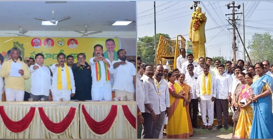 జగ్గయ్యపేట పట్టణంలోని ఎన్టీఆర్ సర్కిల్ సమీపంలోని ఉక్కు కళావేదిక వద్ద శుక్రవారం టిడిపి మండల, పట్టణ, క్లస్టర్, యూనిట్, బూత్, వార్డు, గ్రామ మరియు అనుబంధ కమిటీల ప్రమాణ స్వీకార మహోత్సవం అంగరంగ వైభవంగా జరిగింది. ఈ కార్యక్రమానికి జగ్గయ్యపేట ఎమ్మెల్యే శ్రీరాం రాజగోపాల్ (తాతయ్య) అధ్యక్షత వహించారు. కొత్తగా ఎన్నికైన కమిటీ సభ్యులు పార్టీ సిద్ధాంతా లకు కట్టుబడి ప్రజాసేవనే లక్ష్యంగా ముందుకు సాగాలని ప్రతిజ్ఞ చేశారు. అనంతరం మహానేత నందమూరి తారక రామారావు విగ్రహానికి పూలమాలలు సమర్పించి నివాళులు అర్పించారు. కొత్త కార్యవర్గం బాధ్యతలు చేపట్టడంతో పార్టీలో ఉత్సాహం నెలకొన్నట్లు కార్యకర్తలు తెలిపారు. *కార్పొరేషన్ డైరెక్టర్లకు సన్మానం* విజయవాడ కనకదుర్గమ్మ దేవస్థానం డైరెక్టర్గా నియమితు లైన మన్నే కళావతి, విశ్వబ్రాహ్మణ కార్పొరేషన్ డైరెక్టర్ కర్రి శేషగిరిరావు (చిన్న), వడ్డెర కార్పొరేషన్ డైరెక్టర్ తాళ్లూరి పార్వతిని ఎమ్మెల్యే శాలువాతో సత్కరించి అభినందించారు. *ప్రజలకు చేరువ కావాలి: ఎమ్మెల్యే సూచన* ఈ సందర్భంగా ఎమ్మెల్యే శ్రీరాం రాజగోపాల్ మాట్లాడుతూ— నియోజకవర్గంలోని ప్రతి నాయకుడు ప్రజలకు మరింత చేరువ కావాలని, ప్రభుత్వం చేపట్టిన అభివృద్ధి –సంక్షేమ కార్యక్రమాలు ప్రతిింటికీ చేరేలా పనిచేయాలని, కుటుంబ సాధికార సారధుల నుంచి బూత్ స్థాయి వరకూ సమన్వయంతో ముందుకు సాగాలని సూచించారు. గత కమిటీలు కష్టపడి భారీ మెజారిటీ సాధించడంలో కీలక పాత్ర పోషించాయనిపేర్కొంటూ, కొత్త కార్యవర్గం కూడా అదే ఉత్సాహంతో పనిచేయాలని కోరారు. టిడిపి క్రమశిక్షణ గల పార్టీ అని, బాధ్యతలు పొందిన నాయకులు అంకిత భావంతో వ్యవహరించాలని ఆయన అన్నారు. చంద్రబాబు–లోకేష్ నాయ కత్వంలో అభివృద్ధి రాష్ట్రంలో అభివృద్ధి, పెట్టుబడు లు, ఉద్యోగావకాశాలు కూటమి ప్రభుత్వం, ముఖ్యంగా నారా చంద్రబాబు నాయుడు, నారా లోకేష్ ల దూరదృష్టి ఫలిత మన్నారు. గ్రామీణాభివృద్ధికి ప్రభుత్వం కట్టుబడి ఉందని తెలిపారు.గ్రామాల్లో సమస్యలు పరిష్కరించేందుకు ప్రజల్లోనే ఉండి పనిచేయాలని కమిటీ సభ్యులకు సూచించారు. రాబోయే స్థానిక సంస్థల ఎన్నికల్లో 100% విజయాన్ని లక్ష్యంగా పెట్టుకోవాలని పిలుపునిచ్చారు. పెద్ద సంఖ్యలో పాల్గొన్న నాయకులు ఈ కార్యక్రమంలో రంగాపురం రాఘవేంద్ర, ముల్లంగి రామకృష్ణారెడ్డి, కొఠారు సత్యనారాయణ ప్రసాద్, నూకల కుమార్ రాజా, మేక వెంకటేశ్వర్లు, కట్టా వెంకట నరసింహారావు, వడ్లమూడి రాంబాబు, చింతల సీతారామయ్య తదితర నాయకులు, కౌన్సిలర్లు, కార్యకర్తలు పెద్ద సంఖ్యలో పాల్గొన్నారు.
