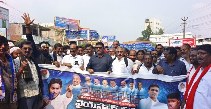 ప్రైవేటీకరణకు వ్యతిరేకంగా వైఎస్ఆర్సిపి ప్రజా ఉద్యమం. *పార్టీలకు అతీతంగా కదలిన యువత, విద్యార్థి లోకం వామపక్షాలు* ప్రైవేటీకరణ ఆలోచన విరమించుకోవాలి…కొరముట్ల శ్రీనివాసులు, కొండూరు అజయ్ రెడ్డి. అన్నమయ్య జిల్లా రైల్వే కోడూరు నవంబర్ 12 ( పున్నమి న్యూస్ ప్రతినిధి- సింగమాల వెంకటేష్ ): మాజీ ముఖ్యమంత్రి వైయస్ జగన్మోహన్ రెడ్డి ఆదేశాల మేరకు మాజీ శాసనసభ్యులు వైఎస్ఆర్సిపి అధికార ప్రతినిధి నియోజకవర్గ ఇన్చార్జ్ కొరముట్ల శ్రీనివాసులు ఆధ్వర్యంలో, కడప పార్లమెంట్ నియోజకవర్గాల పరిశీలకులు కొండూరు అజయ్ రెడ్డి పర్యవేక్షణలో, రైల్వే కోడూరు పట్టణంలో వైద్య కళాశాలల ప్రైవేటీకరణకు వ్యతిరేకంగా వైయస్సార్సీపి చేపట్టిన ప్రజా ఉద్యమం కార్యక్రమంలో ఐదు మండలాల వైఎస్ఆర్సిపి కార్యకర్తలు నాయకులు, మరియు, వామపక్షాలు, మేధావులు విద్యార్థులు వారి తల్లిదండ్రులతో, కలిసి బుధవారం నాడు పట్టణంలోని రాజ్ కన్వెన్షన్ నుండి ర్యాలీగా మొదలై తహసిల్దార్ కార్యాలయం వద్ద రెవెన్యూ ఇన్స్పెక్ట ర్ కు వినతిపత్రం సమర్పించిన అనంతరం పత్రికా విలేకరులతో కొరముట్ల శ్రీనివాసులు, కొండూరు అజయ్ రెడ్డి మాట్లాడుతూ స్వాతంత్రం వచ్చినప్పటినుండి రాష్ట్రంలో 11 మెడికల్ కళాశాలలు ఉండగా 2019లో వైఎస్సార్సీపీ అధికారంలోకి రాగానే ముందు చూపు ఉన్న ముఖ్యమంత్రిగా పేద పిల్లల భవిష్యత్తును దృష్టిలో ఉంచుకుని అప్పటి ముఖ్యమంత్రి వైఎస్ జగన్మోహన్ రెడ్డి నూతనంగా 17 మెడికల్ కళాశాలలు తీసుకురాగా వీటిలో 5 మెడికల్ కళాశాలలను 2023-2024 లో ప్రారంభించారని తద్వారా 750 ఎంబీబీఎస్ సీట్లు మాజీ ముఖ్యమంత్రి వైఎస్ జగన్మోహన్ రెడ్డి విద్యార్థులకు ఆదనంగా అందించారని, తదనంతరం గతేడాది చంద్రబాబు నాయుడు ముఖ్యమంత్రి గా గద్దెనెక్కడంతో వైద్య విద్యకు గ్రహణం పట్టుకుందని, 90 శాతం పనులు పూర్తయి మరికొన్ని నిర్మాణ దశలో ఉండంగా నేడు వాటిని చంద్రబాబు నాయడు పిపిపి విధానంలో ప్రైవేటుపరం చేస్తూ కూటమి ప్రభుత్వం యొక్క యొక్క ముఖ్య అనుచరులకు గంపగుత్తగా కట్టబెట్టే నిర్ణయం తీసుకోవడం దారుణమని అన్నారు, కొత్త వైద్య కళాశాలలను చంద్రబాబు కుట్రపూరితంగా అడ్డుకోవడంతో ఆంధ్రప్రదేశ్ విద్యార్థులు తీవ్రంగా నష్టపోతారని, ఎంబిబిఎస్ చదువు కోవాలన్న విద్యార్థుల ఆశలకు చంద్రబాబు సర్కారు గండి కొట్టిందని ఆగ్రహం వ్యక్తం చేశారు, వెంటనే ప్రైవేటీకరణను ఉపసంహ రించుకోవాలని డిమాండ్ చేశారు. ఈ కార్యక్రమంలో పుల్లంపేట ఎంపీపీ సీనియర్ నాయకులు ముద్దా బాబుల్ రెడ్డి, ఓబులవారిపల్లి మండల కన్వీనర్ వత్తలూరు సాయి కిషోర్ రెడ్డి, చిట్వేల్ మండల కన్వీనర్ చెవ్వు శ్రీనివాసులురెడ్డి, పుల్లంపేట మండల కన్వినర్ ముస్తాక్, పెనగలూరు మండల కన్వీనర్ చక్రపాణి, కోడూరు మండల కన్వీనర్, వైస