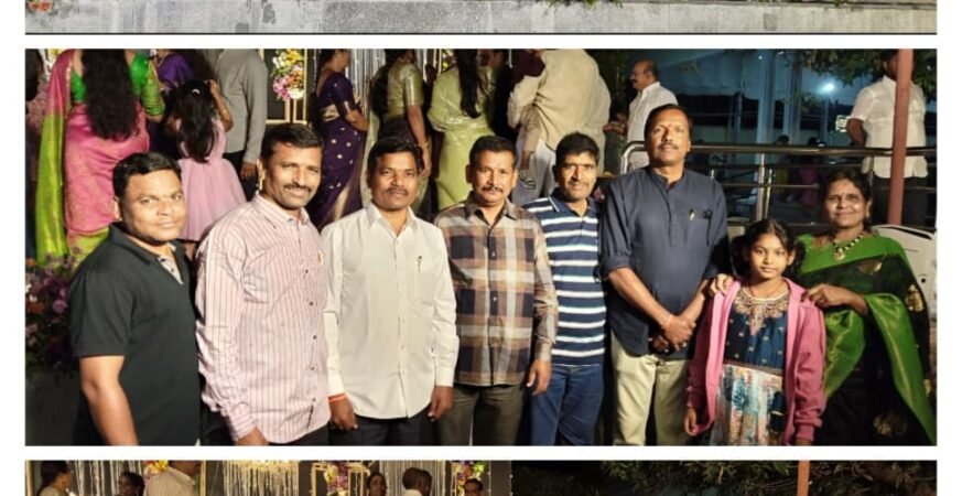 💥 *పున్నమి ప్రతినిధి మహబూబ్నగర్(తేది.11.11.202* *రాష్ట్ర అధ్యక్షులు శానమోనినర్సిములుగారి నేతృత్వంలో* పండిత పరిషత్తు బృందము మన Recognised Upadhyaya Panditha Parishathu – TS సంఘం ప్రధాన సలహాదారులు శ్రీ *గాల్ రెడ్డి హర్షవర్ధన్ రెడ్డి* గారి మేనల్లుడు గారి రిసెప్షన్ కు పాలమూరు జిల్లా , అప్పన్నపల్లిలోని బృందావన్ గార్డెన్ లో కలిసి శుభాకాంక్షలు తెలుపడం జరిగింది. పై కార్యక్రమంలో రాష్ట్ర గౌరవ అధ్యక్షులు *డా||ఎం.ఎన్. విజయకుమార్,* రాష్ట్ర మహిళా అధ్యక్షురాలు శ్రీమతి *శాంతా రెడ్డి* గారు, రాష్ట్ర వర్కింగ్ ప్రెసిడెంట్ *లింగారం వీరేందర్ గౌడ్* గారు, రాష్ట్ర ఉపాధ్యక్షులు *రాచాల నవీన్ కుమార్* గారు, రాష్ట్ర సాంస్కృతిక కార్యదర్శి *శ్రీనివాస్* గారు, వనపర్తి జిల్లా ప్రధాన కార్యదర్శి *కృష్ణయ్య* గారు, జిల్లా కార్యదర్శి *అశోక్ కుమార్* గారు పాల్గొన్నారు.
