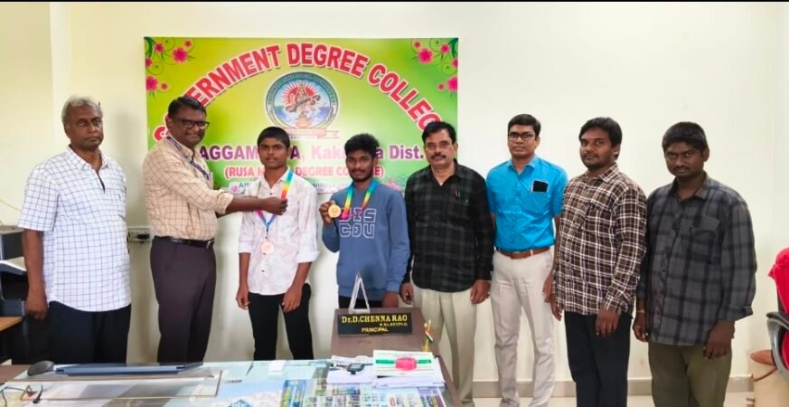 సోమవారం నాడు రాజమహేంద్రవరం ఆది కవి నన్నయ్య విశ్వవిద్యాలయంలో నిర్వహించబడిన ఆల్ ఇండియన్ ఇంటర్ యూనివర్సిటీ సెలెక్షన్స్ లో వివిధ క్రీడా పోటీలను నిర్వహించారు. ఈ పోటీలకు జగ్గంపేట ప్రభుత్వ డిగ్రీ కళాశాల ప్రిన్సిపల్ డా.డి. చెన్నారావు ప్రోద్భలంతో కళాశాల స్పోర్ట్స్ ఇంచార్జ్ శ్రీ రాయుడు శ్రీను గారు కళాశాల మొదటి సంవత్సరం కెమిస్ట్రీ విభాగం నుండి వై. కృష్ణార్జుస్ మరియు ఎమ్. దుర్గా ప్రసాద్ విధ్యార్ధులను రిజిలింగ్(కుస్తీ) 57 కేజ్ కేటగిరీ పోటీకి పంపించడం జరిగింది. ఈ సెలెక్షన్స్ విభాగంలో జగ్గంపేట విద్యార్థులు వై. కృష్ణార్జున్ మొదటి స్థానాన్ని (Gold medal) మరియు ఎమ్. దుర్గా ప్రసాద్ తృతీయ స్థానాన్ని (Bronze medal) కైవసం చేసుకుని తమ ప్రతిభను దాటారు. మొదటి స్థానం సాదించిన వై. కృష్ణార్జుస్ జాతీయ స్థాయి రిజిలింగ్ పోటీలకు ఎంపికయ్యి జగ్గంపేట ప్రభుత్వ డిగ్రీ కళాశాల యొక్క కీర్తిని జాతీయ స్థాయిలో నిలపడం జరిగింది. వై. కృష్ణార్జుస్ జనవరి 2026 లో జాతీయ స్థాయిలో జరిగే రిజిలింగ్ పోటీలకు చండీఘర్ (పంజాబ్) లో పాల్గొంటాడని ప్రిన్సిపల్ గారు తెలిపారు. తేదీ 04-11-2025, మంగళవారం నాడు కళాశాలలో ప్రిన్సిపల్ డా. డి. చెన్నారావు గారు విజయం సాధించి కళాశాల కీర్తిని జాతీయ స్థాయిలో నిలిపిన విధ్యార్థులకు అభినందన కార్యక్రమం ఏర్పాటు చేయడం జరిగింది. ఈ సంధార్బంగా కళాశాల ప్రిన్సిపల్ గారు మాట్లాడుతూ విజయం సాదించిన విధ్యార్థులు అంతర్జాతీయ స్థాయిలో నిలబడాలని ఆశీర్వదించారు, ప్రతి విధ్యార్థి వీరిని ఆదర్శంగా తీసుకుని క్రీడారంగంలో తమ ప్రతిభను చాటాలని భవిష్యత్తులో మంచి స్థాయిలో ఉండాలని తెలిపారు. ఈ కార్యక్రమంలో కళాశాల వైస్ ప్రిన్సిపల్ శ్రీ.సి. హెచ్. బాలరాజు గారు, ఐ. క్యూ.ఏ. సి కో-ఆర్డినేటర్ డా. పి.వి.వి. సత్యా నారాయణ గారు, కెమిస్ట్రీ అధ్యాపకులు వి. మల్లికార్జున శర్మ గారు, హిస్టరీ అద్యాపకులు ఆర్. శ్రీనుగారు, తెలుగు అధ్యాపకులు, డా. డి.సత్యలత గారు, గణిత ఆధ్యాపకులు సి.హెచ్.ఝాన్సీరాణి గారు, ఫిజిక్స్ అధ్యాపకులు వి.గోపాల కృష్ణ గారు, కామర్స్ ఆద్యాపకులు డా.జి. సురేష్ , పి.పద్మ శేఖర్ గll, కె. వెంకట రావు, కంప్యూటర్ ఆధ్యాపకులు వి. దేవి ప్రసన్న , జువాలజీ ఆద్యాపకులు పి.శ్రీనివాస రావు, బొటాని అధ్యాపకులు వై. నవీన ఇతర అద్యపకేతర సిబ్బంది మరియు విద్యార్ధిని, విద్యార్థులు పాల్గొన్నారు.