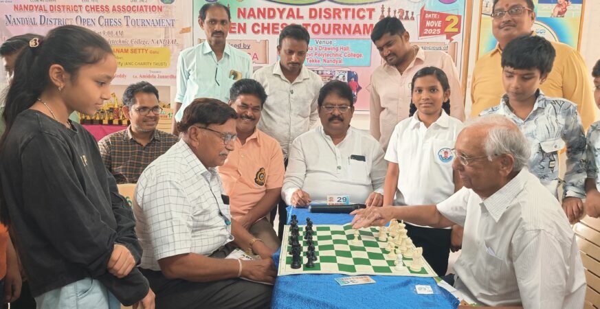 నంద్యాల జిల్లా చెస్ సంఘం,నంద్యాల లయన్స్ క్లబ్ సంయుక్త నిర్వహణలో, నంద్యాల లయన్స్ క్లబ్ వ్యవస్థాపక సభ్యులు ఆత్మకూరు సుదర్శనం శెట్టి సౌజన్యంతో ఆదివారం స్థానిక ఈపూరి శేషయ్య శెట్టి ప్రభుత్వ పాలిటెక్నిక్ కళాశాల జింకా ఆడిటోరియంలో జిల్లా స్థాయి ఓపెన్ చెస్ టోర్నమెంట్ పోటీలు ప్రారంభమయ్యాయి ఈ సందర్భంగా నంద్యాల జిల్లా చెస్ సంఘం అధ్యక్షులు డాక్టర్ రవికృష్ణ అధ్యక్షతన జరిగిన ప్రారంభోత్సవ కార్యక్రమంలో టోర్నమెంట్ స్పాన్సర్ ఆత్మకూరు సుదర్శనం శెట్టి, ప్రముఖ వైద్యులు డాక్టర్ గెలివి సహదేవుడు,లయన్స్ క్లబ్ అధ్యక్షులు సోమేసుల నాగరాజు అతిథులుగా పాల్గొని ప్రసంగించారు డాక్టర్ రవి కృష్ణ మాట్లాడుతూ చదరంగం క్రీడ ఏకాగ్రతను ఇనుముడింప చేస్తుందని తద్వారా చదువులో కూడా రాణించడానికి అవకాశాలు అధికమవుతాయని అన్నారు. ఆత్మకూరు సుదర్శనం శెట్టి మాట్లాడుతూ మొబైల్ ఫోన్ పిల్లలలో దుష్ప్రభావం చూపుతున్నదని,దాని నుంచి పిల్లల దృష్టి క్రీడలపై ఉండేలా చేస్తే పిల్లలలో మేధో వికాసం జరుగుతుందన్నారు. డాక్టర్ సహదేవుడు మాట్లాడుతూ విద్యార్థులకు చదువుతోపాటు క్రీడలు, కళలు వారి వ్యక్తిత్వ వికాసానికి దోహదం చేస్తాయని అన్నారు.విద్యార్థులు క్రీడలలో పాల్గొంటే క్రమశిక్షణ కూడా అలవడుతుందని అన్నారు. క్రీడలలో నిరంతర సాధన విజయానికి సోపానం అన్నారు నంద్యాల జిల్లా చెస్ సంఘం కార్యదర్శి రామ సుబ్బారెడ్డి పర్యవేక్షణలో ఆత్మకూరు సుదర్శనం శెట్టి, డాక్టర్ గెలివి సహదేవుడు చదరంగం బోర్డుపై పావులు కదిలించి పోటీలు ప్రారంభించారు ఈ కార్యక్రమంలో నంద్యాల జిల్లా చెస్ సంఘం కార్యదర్శి రామ సుబ్బారెడ్డి, నంద్యాల లయన్స్ క్లబ్ అధ్యక్షులు సోమేసుల నాగరాజు, కార్యదర్శి తాతిరెడ్డి భాస్కర రెడ్డి,కోశాధికారి అమిదేల జనార్ధన్, టోర్నమెంట్ కోఆర్డినేటర్ వెంకటరావు, లయన్స్ క్లబ్ సభ్యులు మేడం చంద్రశేఖర్, గెలివి శ్రీకాంత్,ఆర్బిటర్ సుజాత, వ్యాయామ ఉపాధ్యాయులు కళ్యాణ చక్రవర్తి, 150 మంది క్రీడాకారులు, వారి తల్లిదండ్రులు పాల్గొన్నారు.
