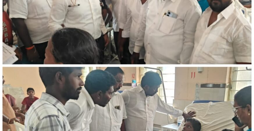 జోగులాంబ గద్వాల్ నవంబర్ 01( పున్నమి ప్రతినిధి) జోగులాంబ గద్వాల జిల్లా అలంపూర్ తాలూకా ధర్మవరం బీసీ హాస్టల్ విద్యార్థులు ఫుడ్ పాయిజాన్ కారణం గా అశ్వస్థ గురై దాదాపు గా 58 మంది విద్యార్థులు గద్వాల ప్రభుత్వ హాస్పటల్ నందు చికిత్సపొందుదుతున్నా విషయం తెలుసుకొని.. గౌరవ మంద కృష్ణ మాదిగ గారి సైన్యం. MRPS జోగులాంబ గద్వాల జిల్లా ప్రధాన నాయకత్వం హాస్పిటల్ కు చేరుకుని బాధితుల ను పరామర్శించటం జరిగింది *అలాగే వారి ఆరోగ్య పరిస్థితి గురించి డ్యూటీ డాక్టర్స్ తో మాట్లాడి వారికి మెరుగైన వైద్యం అందించాలని కోరారు. అనంతరం… MRPS జిల్లా మాజీ అధ్యక్షులు, MSP జిల్లా కన్వీనర్ ఐజ రాజు మాదిగ, గద్వాల అశోక్ మాదిగ మాట్లాడుతూ… జిల్లా లో సంక్షేమ హాస్టల్స్ విద్యార్థుల కు…రోజు, రోజు కు రక్షణ లేకుండా పోతుంది. జిల్లా అధికారుల పర్యవేక్షణ లేక పోవడం హాస్టల్ వార్డెన్స్ బాధ్యత రహితంగా వ్యవారిస్తున్నారు దీనితో సంక్షేమ హాస్టల్స్ పూర్తిగా నిర్లక్షానికి గురవుతున్నాయ్. కొన్ని హాస్టల్స్ లో వంట వారిదే పెత్త నం సాగుతూ. ఇలాంటి నిర్లక్ష్యం గా వంటలు చేస్తూ పిల్లల ప్రాణాలతో చాలగటం ఆడుతున్నారు కావున జిల్లా కలెక్టర్ గారు ఈ సంఘటన పై పూర్తి స్థాయి లో విచారణ జరిపంచి బాద్యులైన వారి పై తగు చర్యలు తీసుకోవాని డిమాండ్ చేశారు. ఈ కార్యక్రమం లో జిల్లా MRPS మాజీ ప్రధాన కార్యదర్శి మోషే మాదిగ, జిల్లా కొ… కన్వినర్ గద్వాల పర్శరామ్ మాదిగ, కన్నా మాదిగ, మాజీ ఎంపీటీసీ ఎల్లప్ప మాదిగ, రంజిత్ కుమార్ మాదిగ తదితరులు పాల్గొన్నారు.