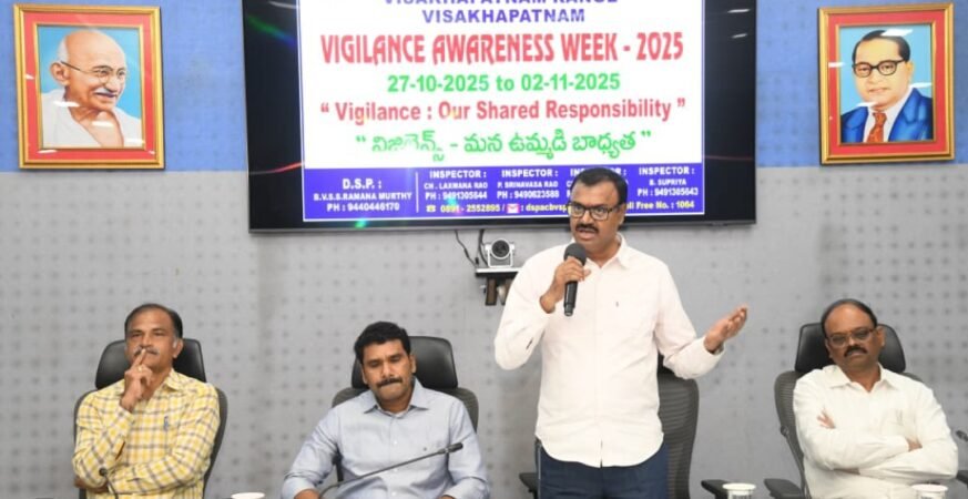 జీవీఎంసీలో విజిలెన్స్ అవగాహన వారోత్సవాలు – 2025 * ఉద్యోగులు అవినీతి రహితంగా , ప్రజాసేవా భావంతో విధులు నిర్వహించాలి. • ఏసీబీ ఫోన్ నెంబర్ 1064 ప్రజలకు నిత్యం అందుబాటులో ఉంది. ఉద్యోగులు జాగ్రత్తలు పాటించాలి. ఎ సి బి డి ఎస్ పి – బి. వి. ఎస్. ఎస్. రమణమూర్తి . *విశాఖపట్నం అక్టోబర్ పున్నమి ప్రతినిధి*; ప్రభుత్వ ఉద్యోగులు అవినీతి రహితంగా ప్రజాసేవ భావంతో తమ విధులను నిర్వహించాలని అవినీతి నిరోధక శాఖ డిప్యూటీ సూపరింటెండెంట్ ఆఫ్ పోలీస్ బి. వి. ఎస్. ఎస్. రమణమూర్తి పేర్కొన్నారు. శుక్రవారం ఆయన 2025 విజిలెన్స్ అవగాహన వారోత్సవాలు సందర్భంగా “విజిలెన్స్ – మన ఉమ్మడి బాధ్యత ” అనే కార్యక్రమాన్ని జీవీఎంసీ ప్రధాన కార్యాలయంలోని సమావేశ మందిరంలో జీవీఎంసీ కార్యదర్శి బి . వి.రమణ,డిప్యూటీ కమిషనర్ రెవెన్యూ ఎస్. శ్రీనివాసరావు నాతో కలిసి జీవీఎంసీ అధికారులు, ఉద్యోగులకు , సచివాలయ వార్డు కార్యదర్శులకు అవినీతి నిర్మూలనపై అవగాహనను కల్పించారు. ఈ సందర్భంగా అవినీతి నిరోధక శాఖ డిప్యూటీ సూపరింటెండెంట్ ఆఫ్ పోలీస్ జీవీఎంసీ అధికారులు, ఉద్యోగులందరితో అవినీతి రహితంగా ఉద్యోగాలను నిర్వహిస్తామనే ప్రతిజ్ఞను చేయించారు. అనంతరం ఆయన మాట్లాడుతూ సర్దార్ వల్లభాయ్ పటేల్ జయంతి పురస్కరించుకొని 2025 అక్టోబర్ 27 నుండి సెప్టెంబర్ 22 వరకు అవినీతి నిరోధక శాఖ ఆధ్వర్యంలో 2025 విజిలెన్స్ అవగాహన వారోత్సవాలు సందర్భంగా” విజిలెన్స్ – మన ఉమ్మడి బాధ్యత ” అనే నినాదంతో చేపట్టిన ఈ కార్యక్రమంలో జీవీఎంసీ అధికారులు ,ఉద్యోగులు, సచివాలయ వార్డు కార్యదర్శులకు అవగాహన కల్పించడం జరిగిందన్నారు. ప్రతి ప్రభుత్వ ఉద్యోగి అవినీతిరహితంగా,ప్రజాసేవా భావంతో విధులు నిర్వహిస్తూ ప్రజల మన్ననలను పొందుతూ ప్రభుత్వానికి మంచి పేరును తీసుకురావాలని సూచించారు. మనందరం ప్రభుత్వ ఉద్యోగులమేనని ప్రభుత్వం మన పనికి తగిన జీతం ఇస్తుందని, అందువలన ప్రజలు అందించే సేవలలో ఎటువంటి లాభాపేక్ష ఆశించకుండా వారికి సహకరించాలన్నారు. సంస్థలో ఒకరు అవినీతి చేస్తే ఆ చెడ్డపేరు ఆ సంస్థకు వస్తుందని, ఉద్యోగ ధర్మంతో పాటు బాధ్యతలు తెలుసుకొని ప్రజలకు సహాయం చేయాలన్నారు. ఉద్యోగులు సేవా భావంతో చేసే నిజాయితీ, నిబద్ధతలకు ప్రతిఫలంగా మంచి ఫలితాలు దక్కుతాయన్నారు . ధర్మాన్ని వీడి అవినీతి జోలికి పోరాదని, అవినీతితో సంపాదించే సొమ్ము కుటుంబాన్ని రోగాలలో నెట్టుతోందని, అది ఎప్పుడూ నిలవదని తెలిపారు. అవినీతి నిరోధశాఖకు చిన్న ,పెద్ద, స్త్రీ పురుష, లింగ బేధం అన్న తేడా ఉండదని ఉద్యోగి ఏ స్థాయిలో వాడైన అవినీతి చేస్తే వదలదని, ఏసీబీలో ఎన్నో సెక్షన్లు ఉన్నాయని వాటిలో ఏ సెక్షన్ కిందనైనా ఉద్యోగి దొరికితే జైలు పాలై కోర్టుల చుట్టూ తిరగడంతో పాటు ఉద్యోగం నుండి తొలగించడం