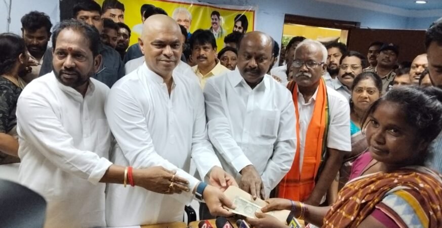 మొంథా తుఫాన్ ప్రభావిత ప్రాంతాల ప్రజలకు నిత్యావసర సరుకులు పంపిణీ కార్యక్రమం పెందుర్తి నియోజకవర్గంలో ఘనంగా జరిగింది. ఈ కార్యక్రమంలో అనకాపల్లి పార్లమెంట్ సభ్యుడు సీఎం రమేష్, జనసేన పార్టీ ఉమ్మడి విశాఖపట్నం రూరల్ జిల్లా అధ్యక్షుడు, పెందుర్తి ఎమ్మెల్యే పంచకర్ల రమేష్ బాబు, నగర మేయర్ పీలా శ్రీనివాసరావు, ఏపీ ఆయిల్ సీడ్ చైర్మన్ గండి బాబ్జి పాల్గొన్నారు. ఈరోజు (31.10.2025) పెందుర్తి మండలం జీవీఎంసీ 96వ వార్డు, మహిళా ప్రగతి కేంద్రం సమావేశ మందిరంలో ఆంధ్రప్రదేశ్ ముఖ్యమంత్రి నారా చంద్రబాబు నాయుడు, ఉప ముఖ్యమంత్రి కొణిదల పవన్ కళ్యాణ్ ఆదేశాల మేరకు తుఫాన్ ప్రభావిత ఏకలవ్య కాలనీ పునరావాస కేంద్రంలో ఉన్న ప్రజలకు నిత్యావసర సరుకులు మరియు నగదు సహాయం అందజేశారు. ఒక కుటుంబానికి గరిష్టంగా ₹3,000 రూపాయల ఆర్థిక సహాయం కూడా ఈ సందర్భంలో పంపిణీ చేయబడింది. పత్రికా మిత్రులతో మాట్లాడుతూ పంచకర్ల రమేష్ బాబు తెలిపారు: మొంథా తుఫాన్ ఆంధ్రప్రదేశ్, ఒడిశా, తమిళనాడు సరిహద్దు ప్రాంతాల్లో తీవ్ర ప్రభావం చూపిందన్నారు. కూటమి ప్రభుత్వం టెక్నాలజీ ఆధారంగా 24×7 మానిటరింగ్ వ్యవస్థ ఏర్పాటు చేసి తుఫాన్ను సమర్థవంతంగా ఎదుర్కొందని చెప్పారు. అధికారులు, ప్రజాప్రతినిధులు, స్థానిక నేతలు సమన్వయంతో పనిచేసినందున తక్కువ నష్టం జరిగిందన్నారు. ముందస్తు జాగ్రత్తల వల్లే ప్రాణనష్టం, ఆస్తి నష్టం తగ్గించగలిగామని పేర్కొన్నారు. ప్రధాని నరేంద్ర మోదీ మార్గదర్శకత్వం, ముఖ్యమంత్రి చంద్రబాబు నాయుడు దృఢసంకల్పం, ఉప ముఖ్యమంత్రి పవన్ కళ్యాణ్, మంత్రి నారా లోకేష్ నిరంతర సమీక్షల వల్ల భారీ విపత్తును ఎదుర్కోవడం సాధ్యమైందని తెలిపారు. రాష్ట్ర ప్రజల తరఫున మోదీ, చంద్రబాబు, పవన్ కళ్యాణ్, నారా లోకేష్లకు ధన్యవాదాలు తెలిపారు. నష్టపోయిన కుటుంబాలకు ప్రభుత్వం పూర్తి సహాయం అందించేందుకు ప్రణాళిక సిద్ధం చేస్తోందన్నారు. జిల్లా కలెక్టర్లు ముందస్తు చర్యలతో కీలక పాత్ర పోషించారని ప్రశంసించారు. తుఫాన్ కారణంగా నష్టపోయిన అన్ని విభాగాల్లో అంచనాలు జరుగుతున్నాయని, నివేదిక త్వరలో కేంద్రానికి అందజేయనున్నామని వెల్లడించారు. ఈ కార్యక్రమంలో మండల రెవెన్యూ అధికారి వెంకట అప్పారావు, జీవీఎంసీ జోన్ 8 కమిషనర్ శంకరరావు, అనకాపల్లి జిల్లా బీజేపీ అధ్యక్షుడు ద్వారపురెడ్డి పరమేశ్వరరావు, జీవీఎంసీ వార్డు కార్పొరేటర్లు రాపర్తి కన్నా, బల్ల శ్రీనివాసరావు, సేనాపతి శంకరరావు, ముమ్మన దేవుడు, బీజేపీ ఇన్చార్జ్ గొర్లి రాము నాయుడు, పెందుర్తి పిఎసిఎస్ చైర్మన్ ఐతి సింహాచలం, ఏపీ ఇరిగేషన్ కార్పొరేషన్ డైరెక్టర్ మడక పార్వతి, ఏఎంసీ వైస్ చైర్మన్ గోరపిల్లి సోము నాయుడు, ఏఎంసీ డైరెక్టర్ ఆర్ఎస్ నాయుడు, ఉరిటి గోవింద్, సంతోష్, ముమ్మన సతీష్, గొంతిన హ