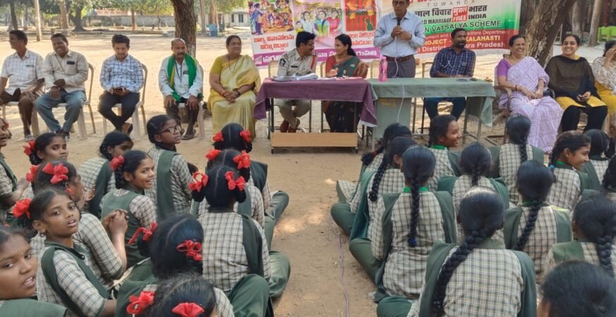 శ్రీకాళహస్తి పున్నమి న్యూస్, ఫిబ్రవరి 12: శ్రీకాళహస్తి పట్టణంలో అంబేద్కర్ బాలికల గురుకుల పాఠశాలలో ప్రగతి సంస్థ, ఉమెన్ అండ్ చైల్డ్ వెల్ఫేర్ డిపార్ట్మెంట్ ఆధ్వర్యంలో బాల్య వివాహాలపై అవగాహన కార్యక్రమం నిర్వహించారు. ఈ కార్యక్రమంలో ప్రగతి సంస్థ డైరెక్టర్ కెవి రమణ మాట్లాడుతూ….మహా శివరాత్రి సందర్భంగా శ్రీకాళహస్తిలో దేవుడి పెళ్లి రోజున ప్రతి యేటా సామూహిక వివాహాలు నిర్వహించడం ఆనవాయితీ. ఆది దంపతులకు పెళ్లి జరిపే రోజు వివాహాలు జరిగితే ఆ జంటలు కలకాలం ఆనందంగా, అన్యోన్యంగా ఉంటాయని ప్రజల విశ్వాసం. కానీ ఈ పర్వదినాన బాల్య వివాహాలు చోటు చేసుకోవడం తీవ్ర ఆవేదనకు గురి చేస్తోంది. మన నమ్మకాలకు, విశ్వాసాలకు అమూల్యమైన బాల్యాన్ని బలి ఇవ్వడం (బాల్య వివాహాలు చేయడం) చట్ట రీత్యా నేరం. బాల్య వివాహలకు పాల్పడితే కుటుంబ సభ్యులు, బంధువులు, పూజారి మొదలు క్యాటరింగ్ చేసిన వారి వరకు ప్రతి ఒక్కరూ శిక్షార్హులే. 2009 నుంచి మాస్ మ్యారేజెస్ సందర్భంగా బాల్య వివాహల నిర్మూలన కొరకు ప్రగతి సంస్థ చేస్తున్న కృషి గురించి ఈ సందర్బంగా ఆయన వివరించారు. శివరాత్రి దేవుడి పెళ్లి, సామూహిక వివాహాల సమయంలో పట్టణం నలుమూలలా చెక్ పోస్ట్ లు ఏర్పాటు చేసి గవర్నమెంట్ డిపార్టుమెంటులతో కలిసి పనిచేస్తామని ఈ సందర్భంగా గుర్తు చేశారు. అనంతరం సిడిపివో శాంతి దుర్గ మాట్లాడుతూ.. బాల్యవివాహాలు చేసుకుంటే కలిగే అనర్ధాల గురించి, అంగన్వాడి సేవలు గురించి వివరించారు. మెడికల్ ఆఫీసర్ శివకుమార్ మాట్లాడుతూ బాల్య వివాహల వల్ల కలిగే ఆరోగ్య పరమైన, మానసిక సమస్యల గురించి, టీనేజి ప్రెగ్నెన్సీ గురించి, మాతా శిశు మరణాలు గురించి వివరించారు. ప్రిన్సిపాల్ మాధవి లత మాట్లాడుతూ చిన్న వయసులో ఆకర్షణలకు లోనై బాల్య వివాహాల బారిన పడకుండా పిల్లందరూ చక్కగా చదువుకుని పాఠశాలకు మంచి పేరు ప్రఖ్యాతలు తీసుకువచ్చి ఉన్నత స్థానాలకు ఎదగాలన్నారు. సీఐ నాగార్జున రెడ్డి మాట్లాడుతూ..బాల్య వివాహాలపై వెంటనే 1098 చైల్డ్ హెల్ప్ లైన్ కు లేదా పోలీసులకు సమాచారం ఇవ్వాలి, బాల్య వివాహాలపై ఉపేక్షించేది లేదని ఆయన తెలిపారు. ఈ కార్యక్రమంలో పాఠశాల ఉపాధ్యాయులు, ప్రగతి సంస్థ సిబ్బంది లక్ష్మి నారాయణ, చంద్ర శేఖర్, జయలక్ష్మి, బోస్, ప్రభాకర్ రాజేశ్వరమ్మ, సుమలత, కోటయ్య, లత, మోహన్ బాబు తదితరులు పాల్గొన్నారు.