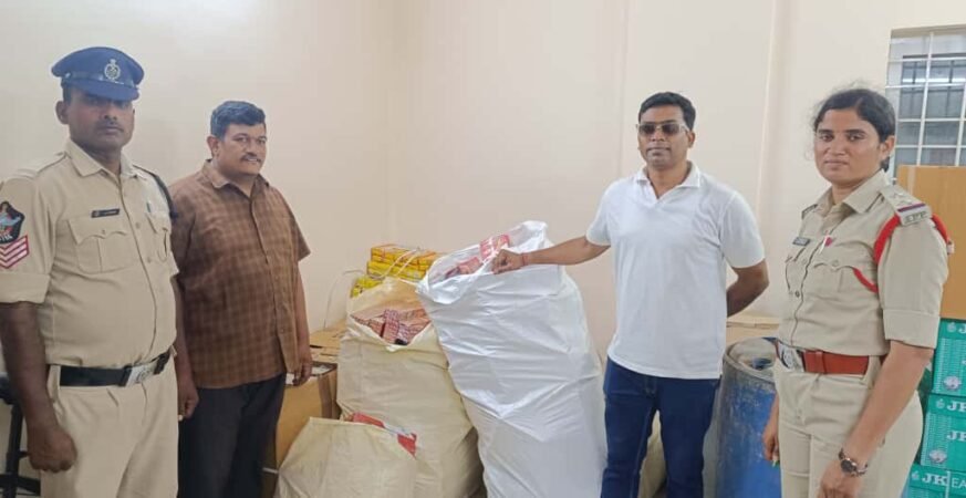 విశాఖ అక్టోబర్ (పున్నమి ప్రతినిధి) నగర పోలీసు కమీషనర్ డా.శంఖబ్రత బాగ్చి, ఐ.పి.ఎస్., వారి ఉత్తర్వుల మేరకు టాస్క్ ఫోర్స్ వారు ఈరోజు అనగా 18.10.2025 న మధ్యాహ్నం నుండి వారి సిబ్బంది తో కలిసి దాడులు నిర్వహించడం జరిగినది. క్రింద పేర్కొన్న వారు ఎటువంటి అనుమతి లేకుండా అక్రమంగా బాణసంచా నిల్వలు కలిగి ఉన్నారనే విశ్వసనీయ సమాచారం మేరకు వారిని అదుపులోనికి తీసుకొని, వారి వద్ద నుంచి బాణసంచా సామాగ్రి, స్వాధీనపర్చుకొని, ఆరిలోవ పోలీస్ స్టేషన్ కు అప్పగించడమయినది. బాణసంచా సామాగ్రి అమ్ముతున్న వ్యక్తి పై కేసు నమోదు చేయడమైనది. ఆరిలోవ పోలీసు స్టేషన్ పరిధికి చెందిన సూరి కిషోర్, 42 సంవత్సరాలు వద్ద 70,000/- రూపాయలు విలువ గల అక్రమ బాణా సంచా స్వాధీనం. ఎవరైనా అనుమతి లేకుండా బాణ సంచా/టపాసులను ఇళ్లల్లో, షాపులలో, జన సముదాయాల మధ్య గోడౌన్లలో స్టాకు అనుమతి లేకుండా నిల్వలు కలిగి ఉంటే చట్టపరమైన చర్యలు తీసుకోబడతాయి. నగర పోలీసు తరపున, విశాఖపట్నం సిటీ.